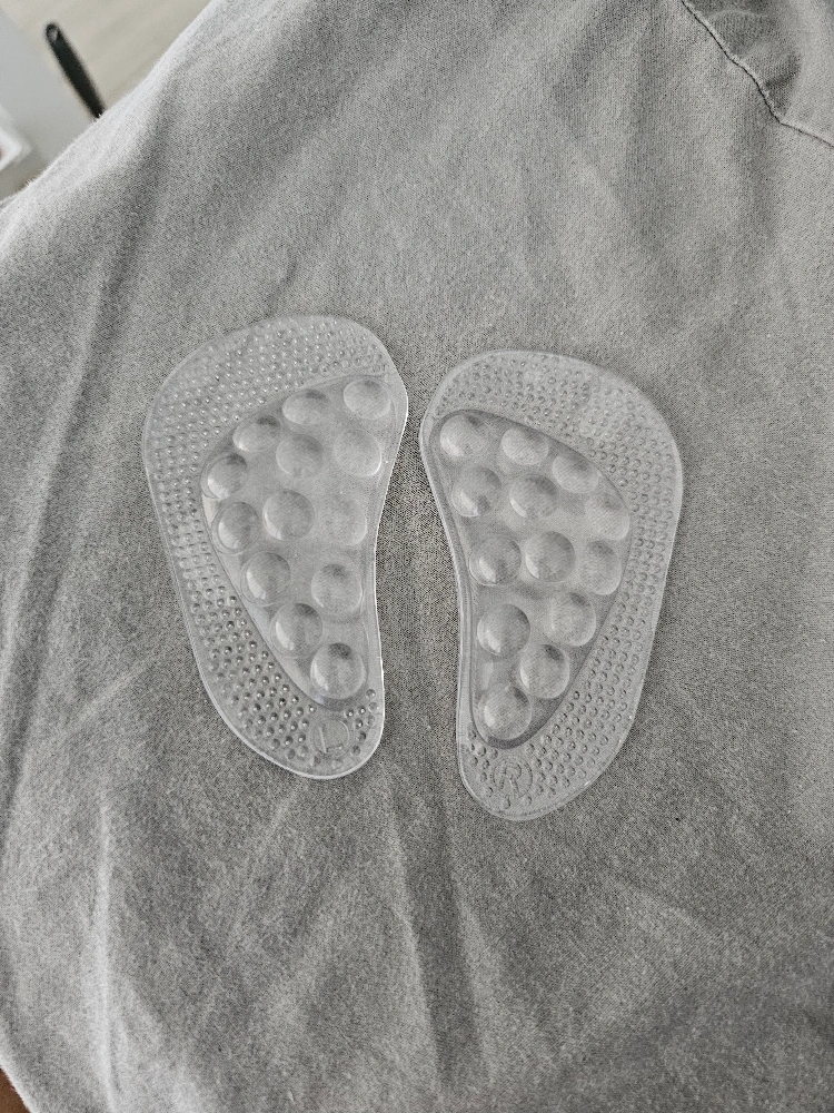 These gel arch support inserts are designed to provide comfort and support for your feet when wearing shoes, especially sandals or flip-flops. They're clear and discreet, so they won't be too noticeable in your footwear. They can help alleviate pressure and provide extra cushioning for your arches. size is small.