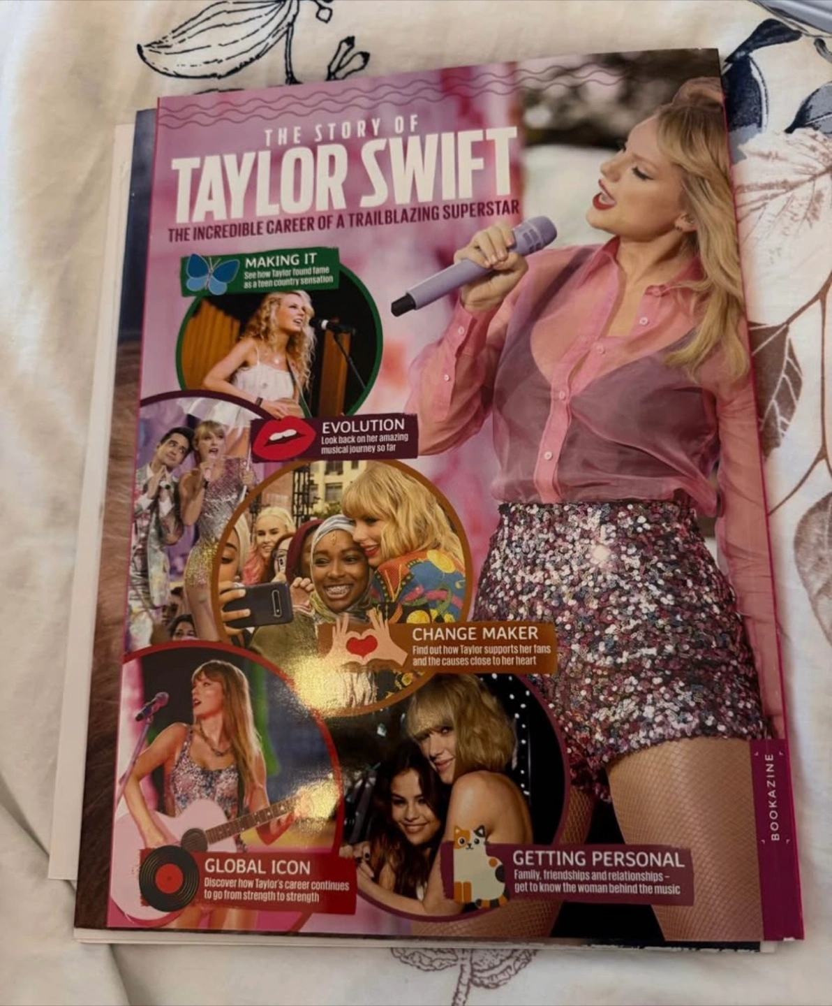 Selling a magazine about Taylor Swift. It covers her incredible career and rise to superstardom! It includes lots of photos and information about her music and activism