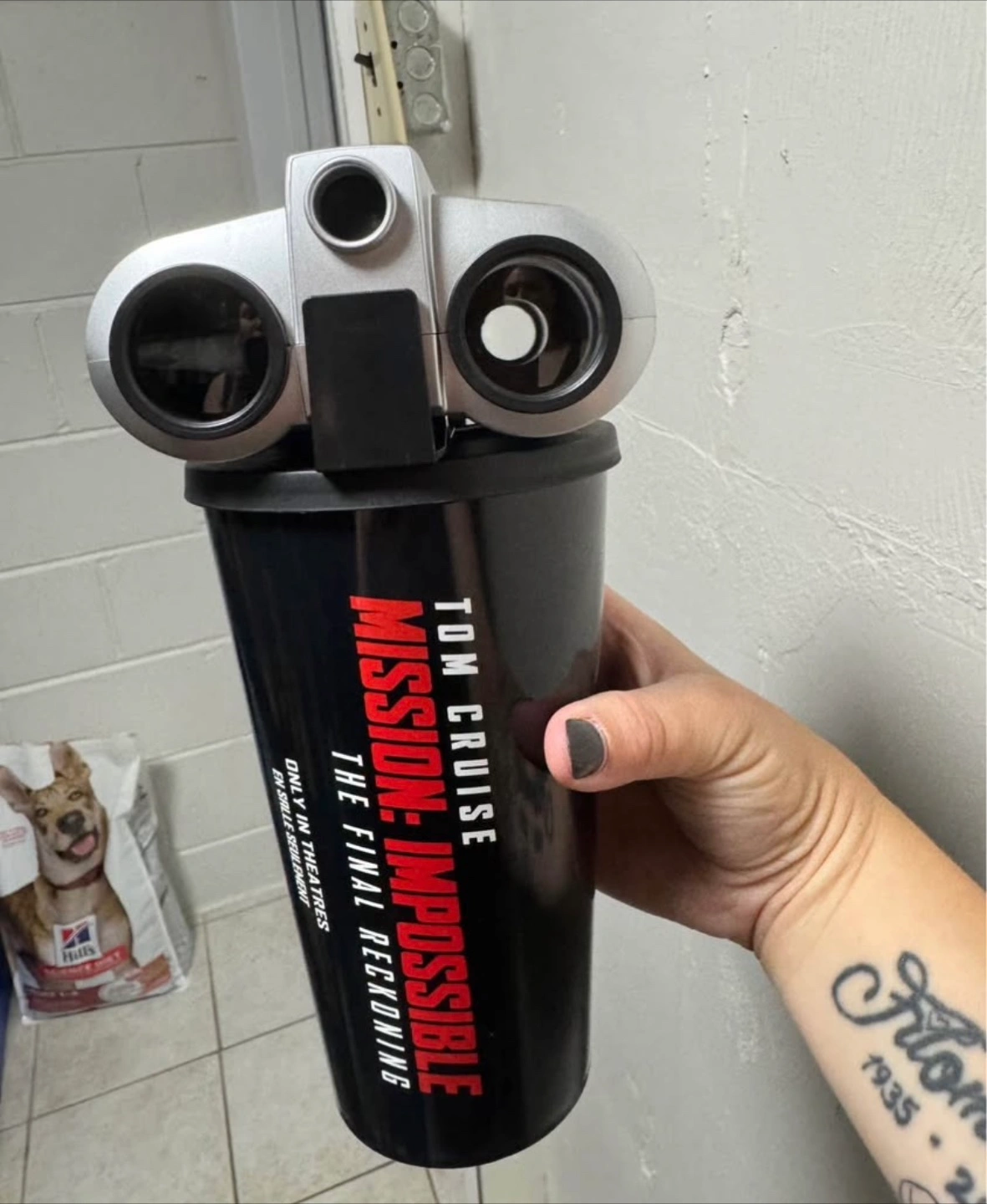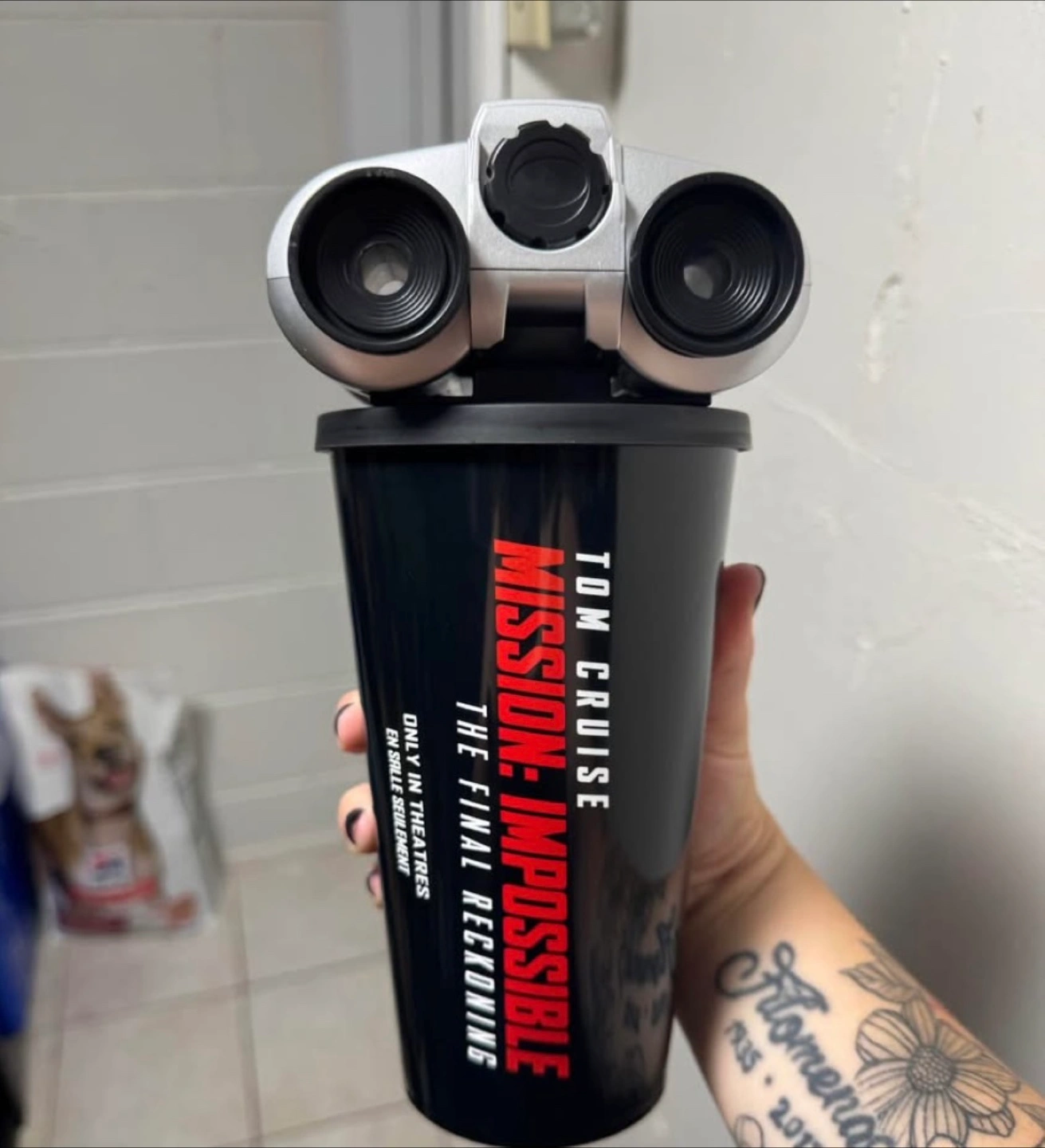 Selling a Mission: Impossible themed cup with attached binoculars. A unique piece for any fan of the series!