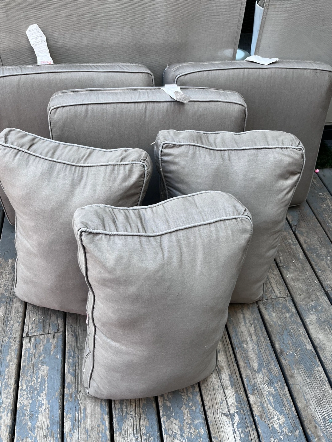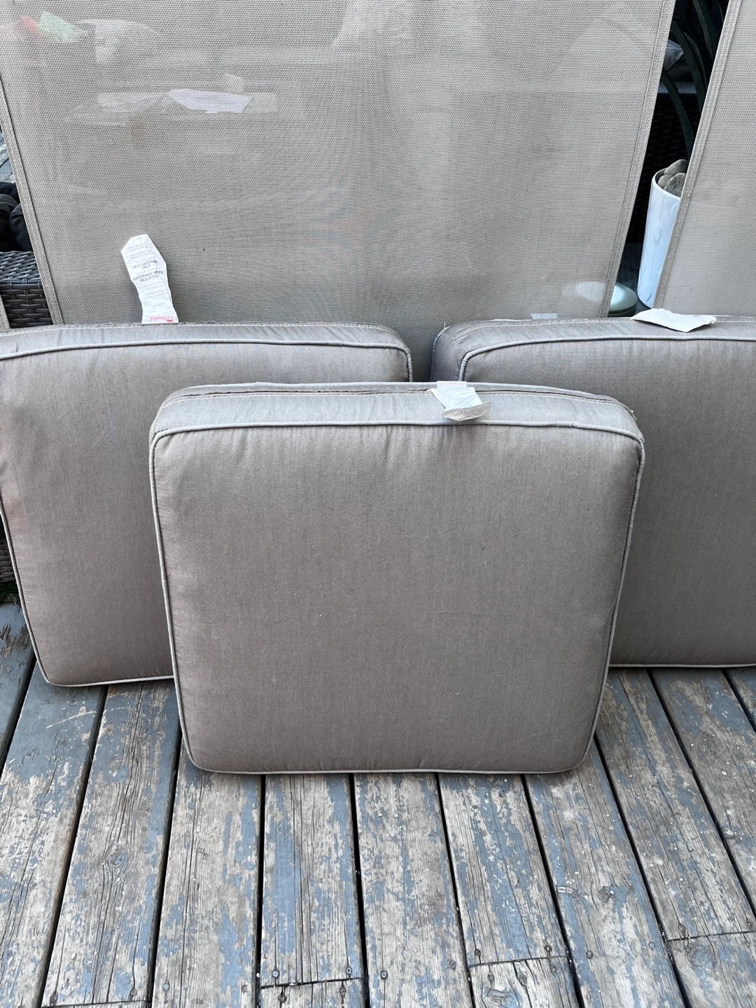 Selling a set of outdoor sunbrella patio cushions. They are in good condition and ready to use for your outdoor seating area. Perfect for adding comfort and style to your patio furniture! Could be used for couch or loveseat and chair. Seat cushions measure 25β x 25β x 6β and back cushions are 17β x 25β x 12β. Colour is beige. Pick up only. Closest intersection is Jane St and Eglinton Ave.