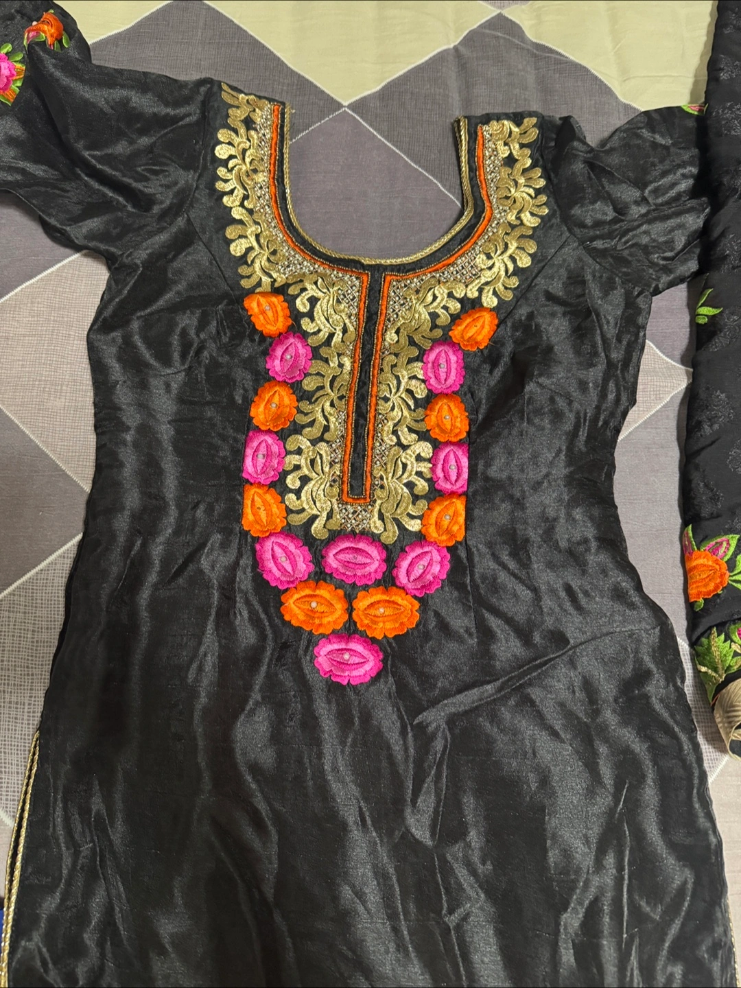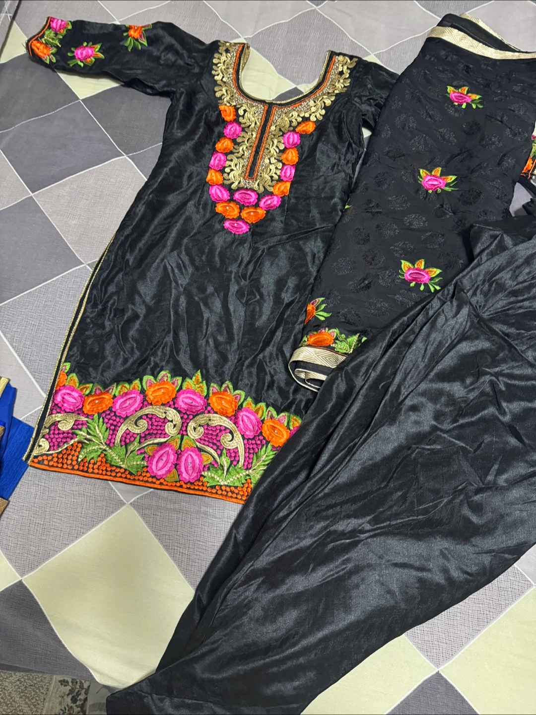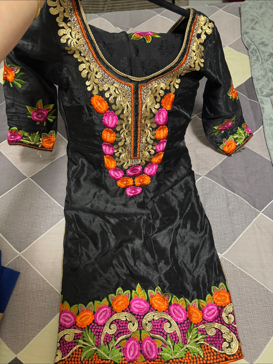 Selling a beautiful black salwar kameez suit with intricate embroidery. It's in great condition and perfect for special occasions or everyday wear. The fabric feels nice and comfortable!
