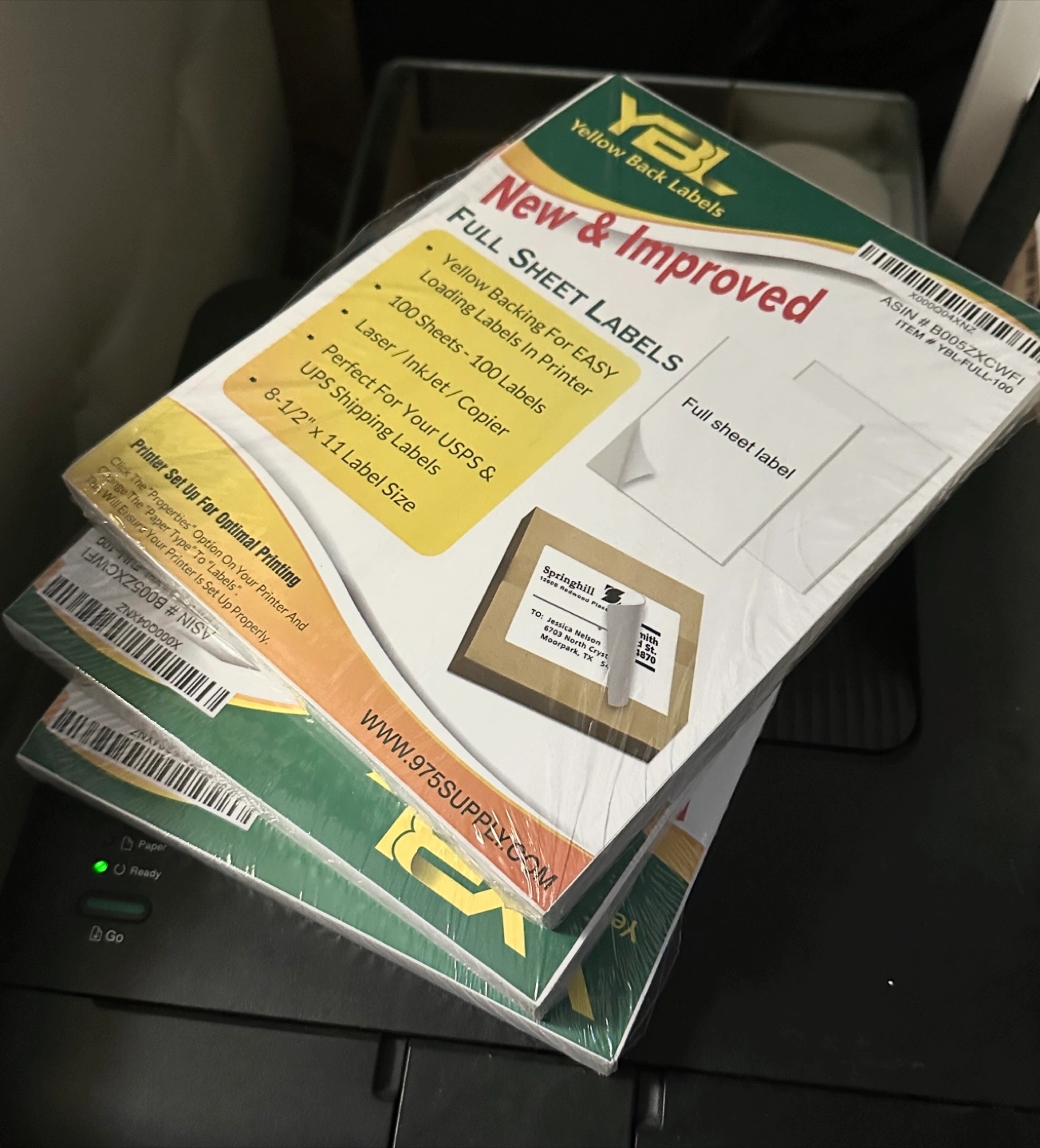 pack of 100 sheets of 8.5” x 11” sticker paper