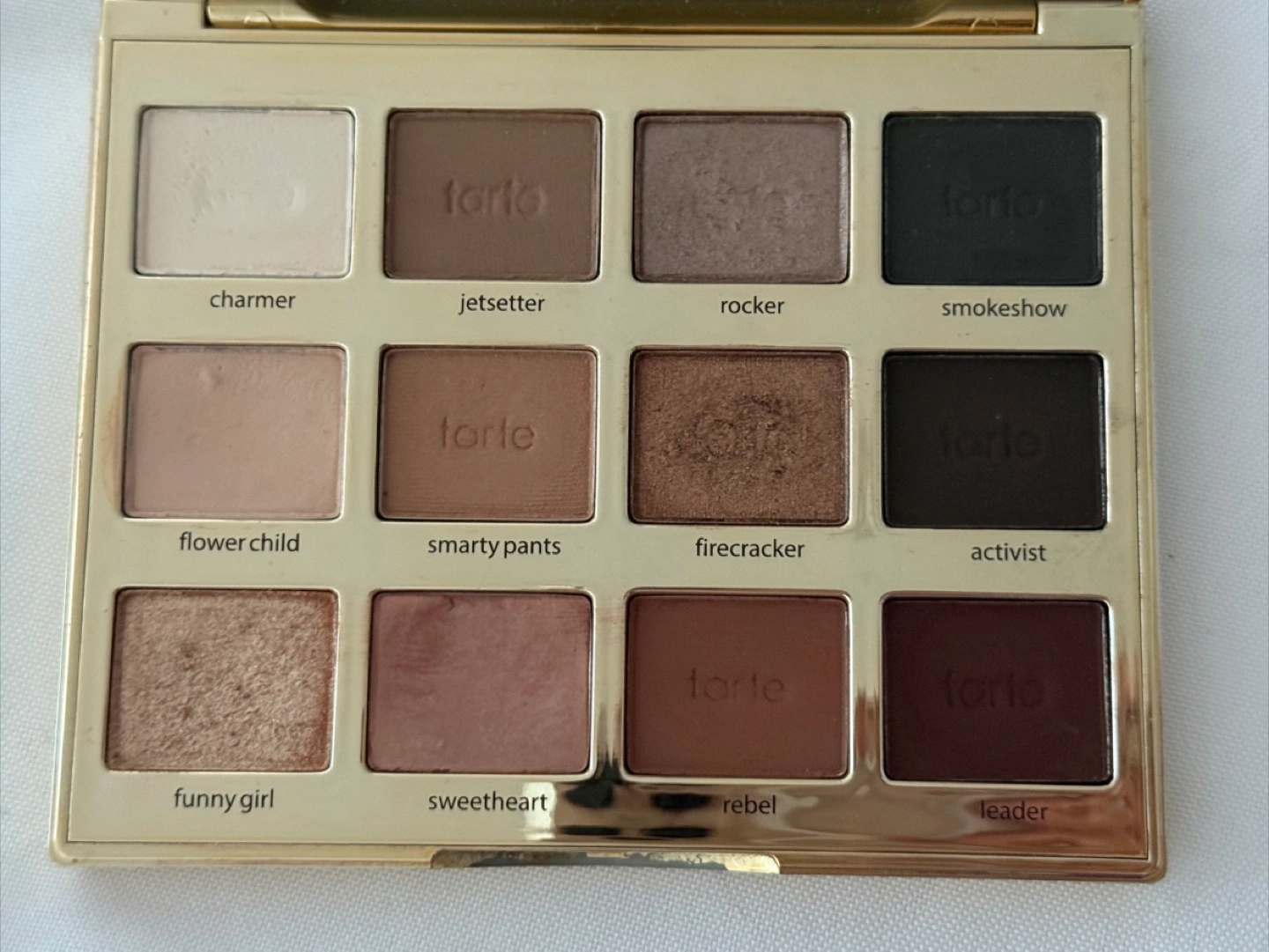 Selling a Tarte Tartelette In Bloom eyeshadow palette. It features 12 shades, including charmer, jetsetter, rocker, smokeshow, flower child, smarty pants, firecracker, activist, funny girl, sweetheart, rebel, and leader
