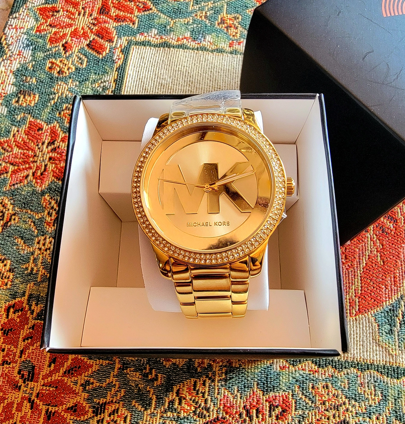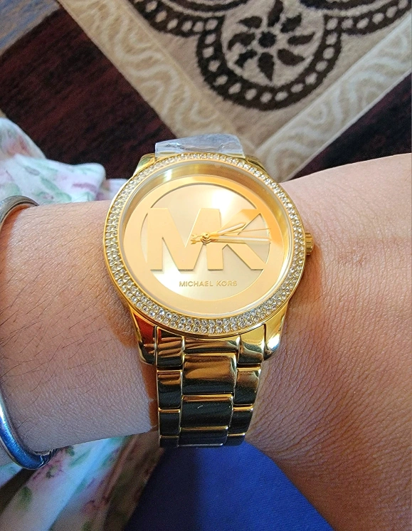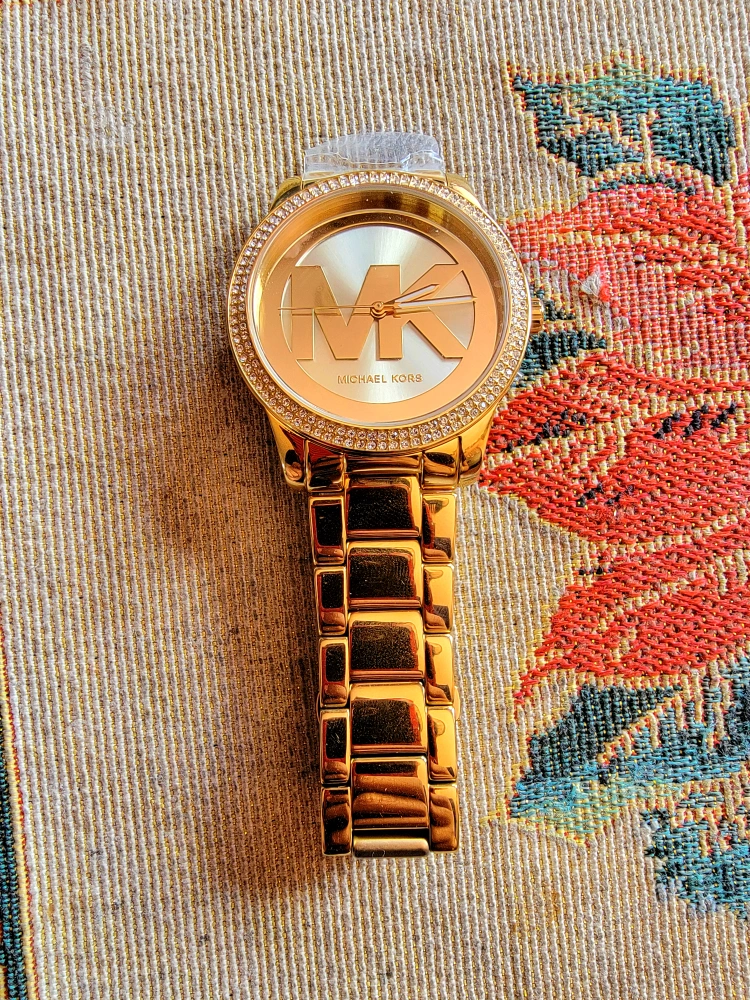 Michael Kors Tibby Quartz Gold Women's Watch MK6879 - stylish and sophisticated, this Michael Kors Tibby is polished touch to any outfit. Perfect for daily wear or special occasions. The watch is NEVER USED, it comes with original bag, box, batteries, plastic protection, foam protection, and preset time. Message me at 647-835-4099 ✅️ More Features about the watch: Model: MK6879 (Tibby Collection) Movement: Quartz (Battery Powered) Water Resistant 50m (165 ft) Band: Stainless steel, gold color (Band is adjustable) Band Dimensions: W: 20mm, L: 7.5 inch Bezel: Crystal-accented Band Type: Bracelet, deployment clasp Manual time adjust with crown, dial has no numerals.