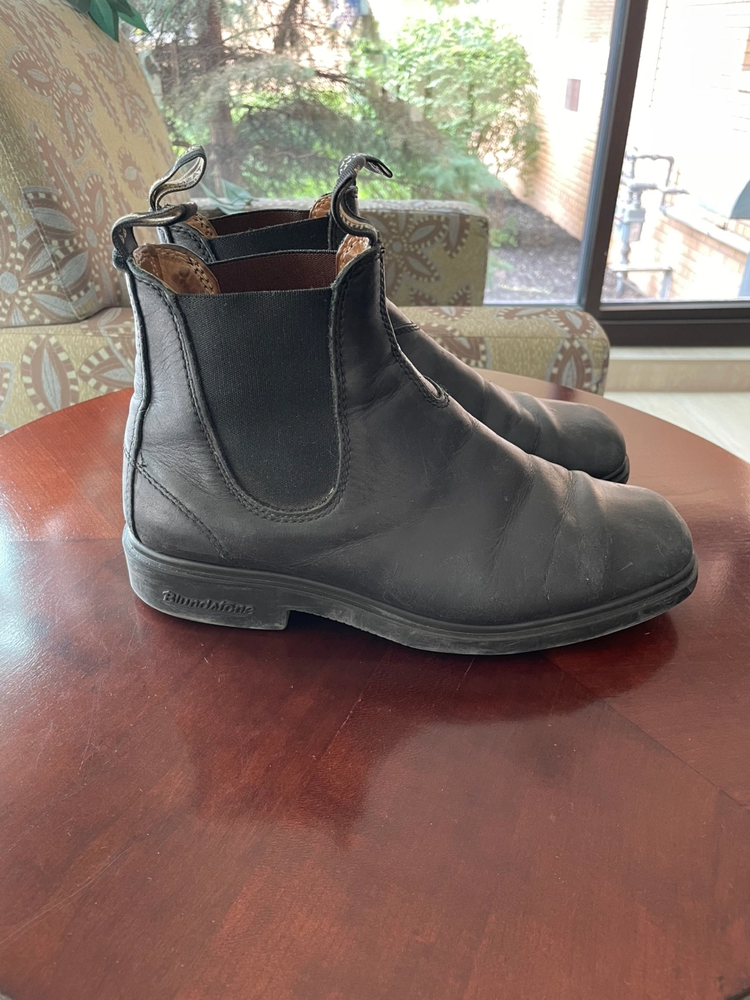 Selling a pair of Blundstone Chelsea boots. They're a classic style and made of durable leather. These boots have some signs of wear, but are still in good condition and ready for a new home! Located in Osborne Village with easy access to driveway for pickup . Selling a pair of black Blunstone boots priced to sell. In great condition. Size 8.5 mens Australian is 9.5 Canadian Men’s generally Accepting etransfer or cash
