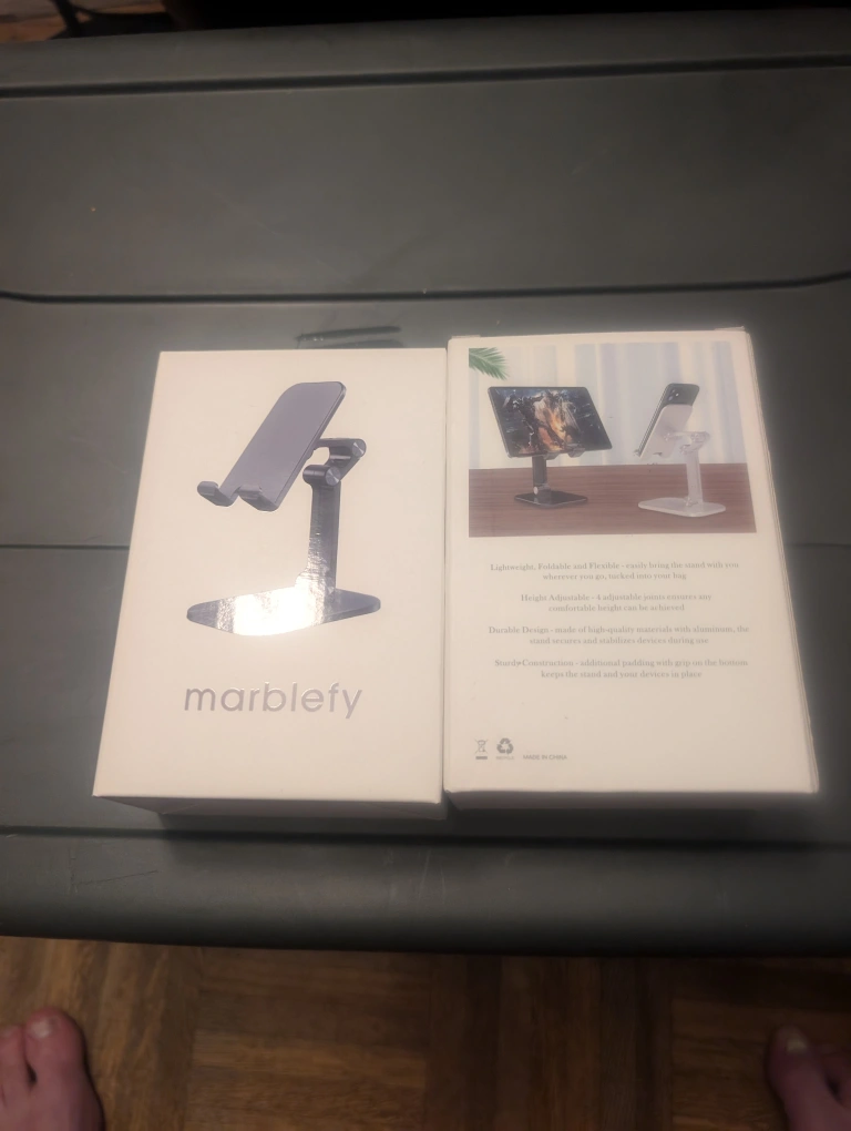 Selling a brand new Marblefly foldable tablet and phone stand! It's lightweight, foldable, and flexible, making it easy to bring with you on the go. The stand is height adjustable with 4 adjustable joints, ensuring a comfortable height can be achieved. Made of high-quality materials with aluminum, the stand secures and stabilizes devices during use. The sturdy construction includes additional padding with grip on the bottom to keep the stand and your devices in place. Comes with the original box! $15 each or $25 for both.