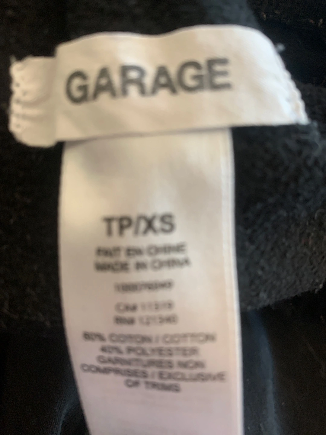 Selling a pair of black sweat pants from Garage in size XS! They're in great condition and made of a comfy 60% cotton and 40% polyester blend
