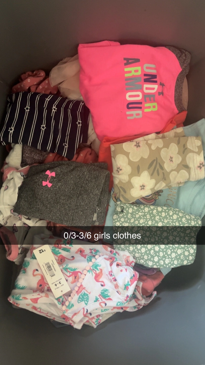 Selling a bundle of girls' clothes, sized 0-6 months. Includes brands like Under Armour, Nike, puma, George, Joe fresh etc!