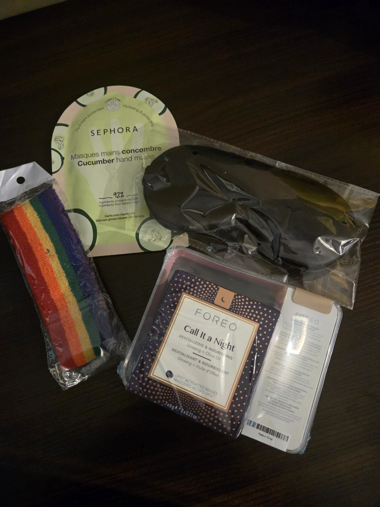 Giving this away as a group, all brand new unopened: 1. FOREO UFO mini LED thermo activated smart mask, Call It a Night masks have an expiry date of 2024 December 21 2. blissy night mask 3. Sephora hand masks 4. Somersby head band