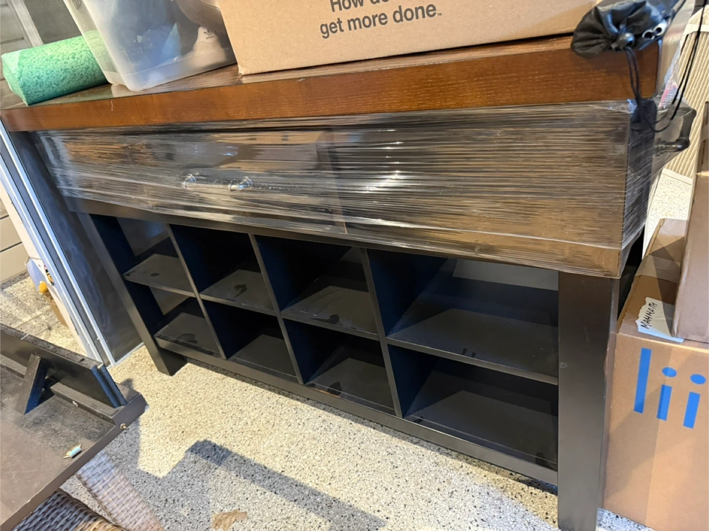 Dark Brown TV Stand with Glass Shelves
