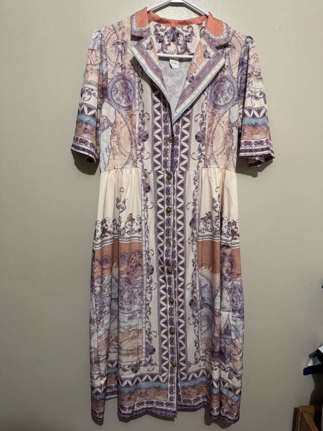 Selling a beautiful Rinascimento dress in size medium. It features a unique patterned design and button-down style. Perfect for a stylish and comfortable look!