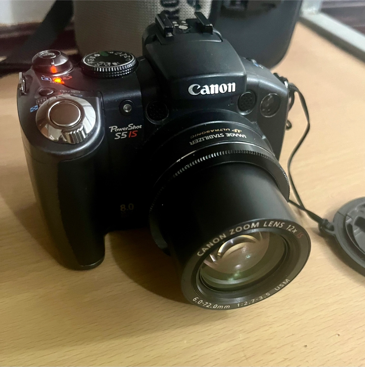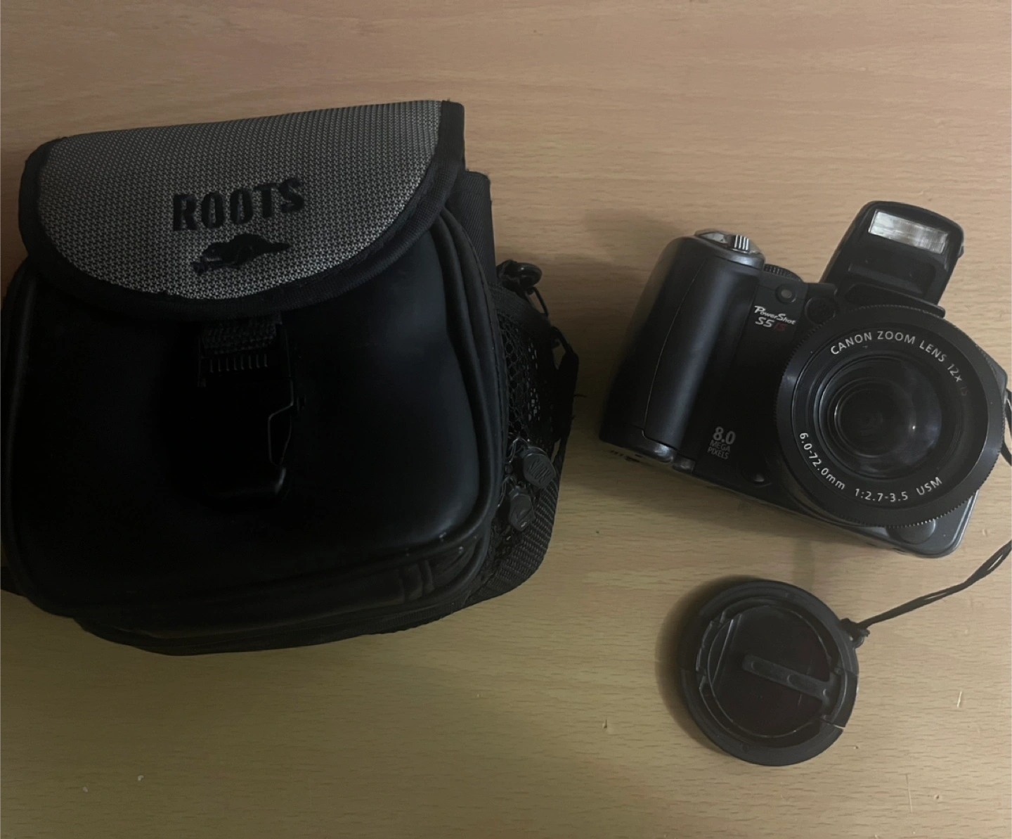 Selling a Canon PowerShot S5 IS digital camera. It comes with a Roots camera bag for easy carrying and protection. Great for photography enthusiasts!