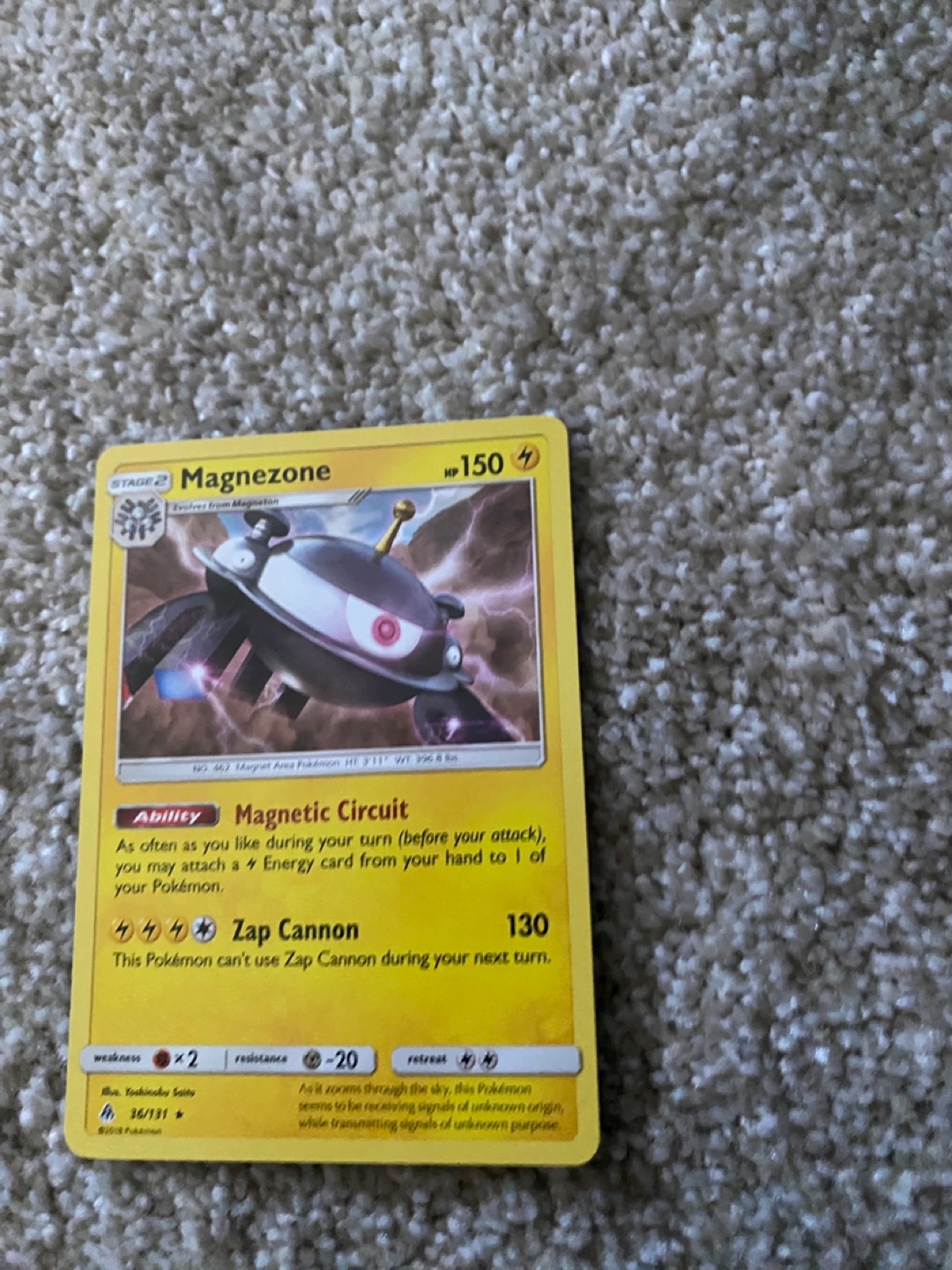 Selling a Magnezone Pokemon card! It has the ability Magnetic Circuit and the attack Zap Cannon. The card has 150 HP. Feel free to message me with any questions!