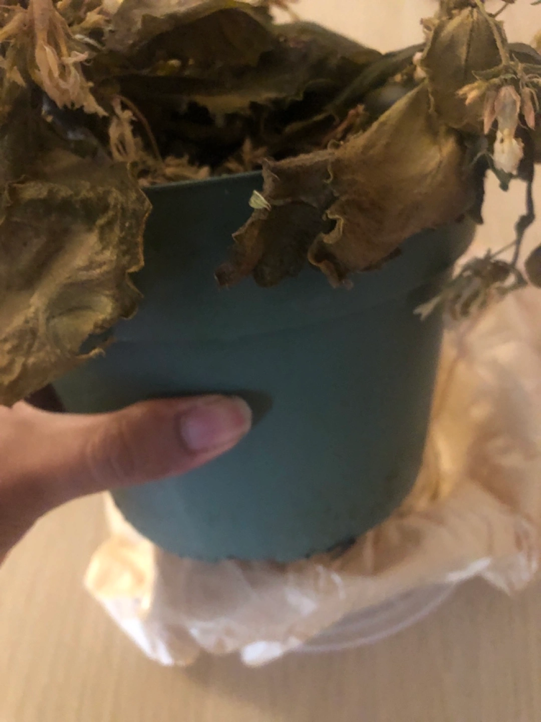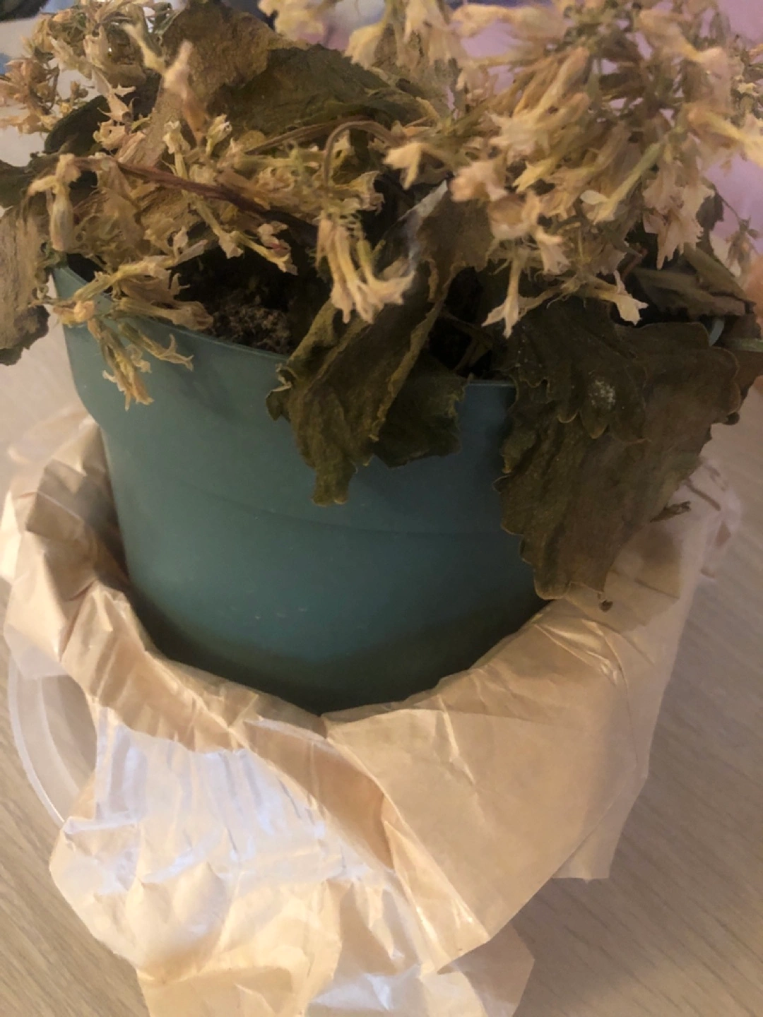 The plant inside is beyond saving but the plant pot and soil are up for grabs!