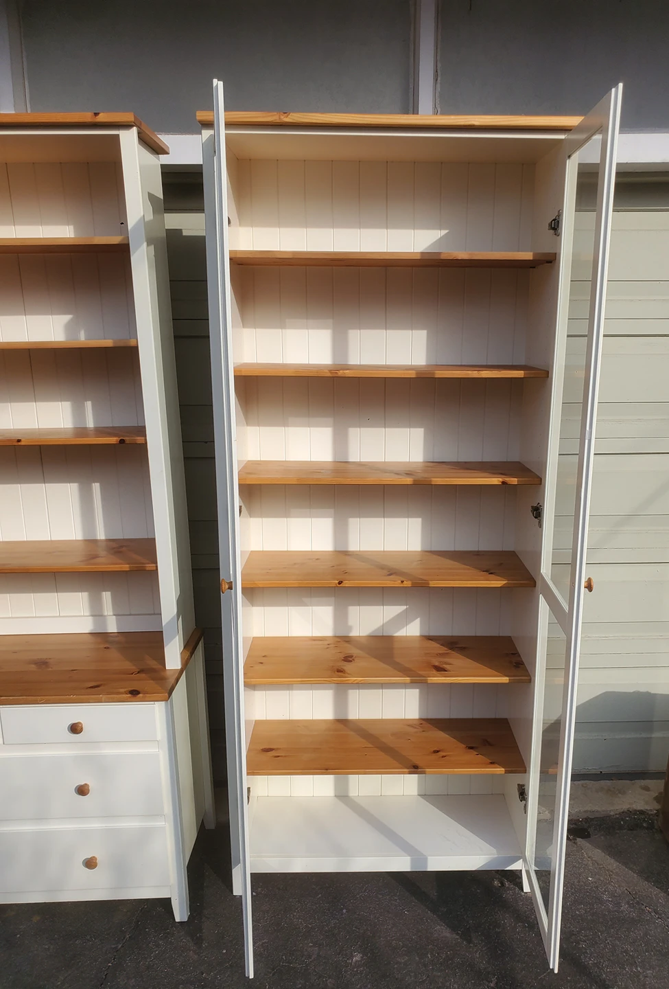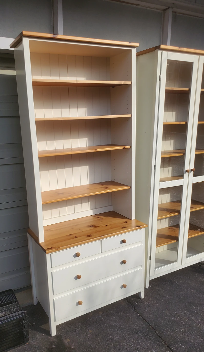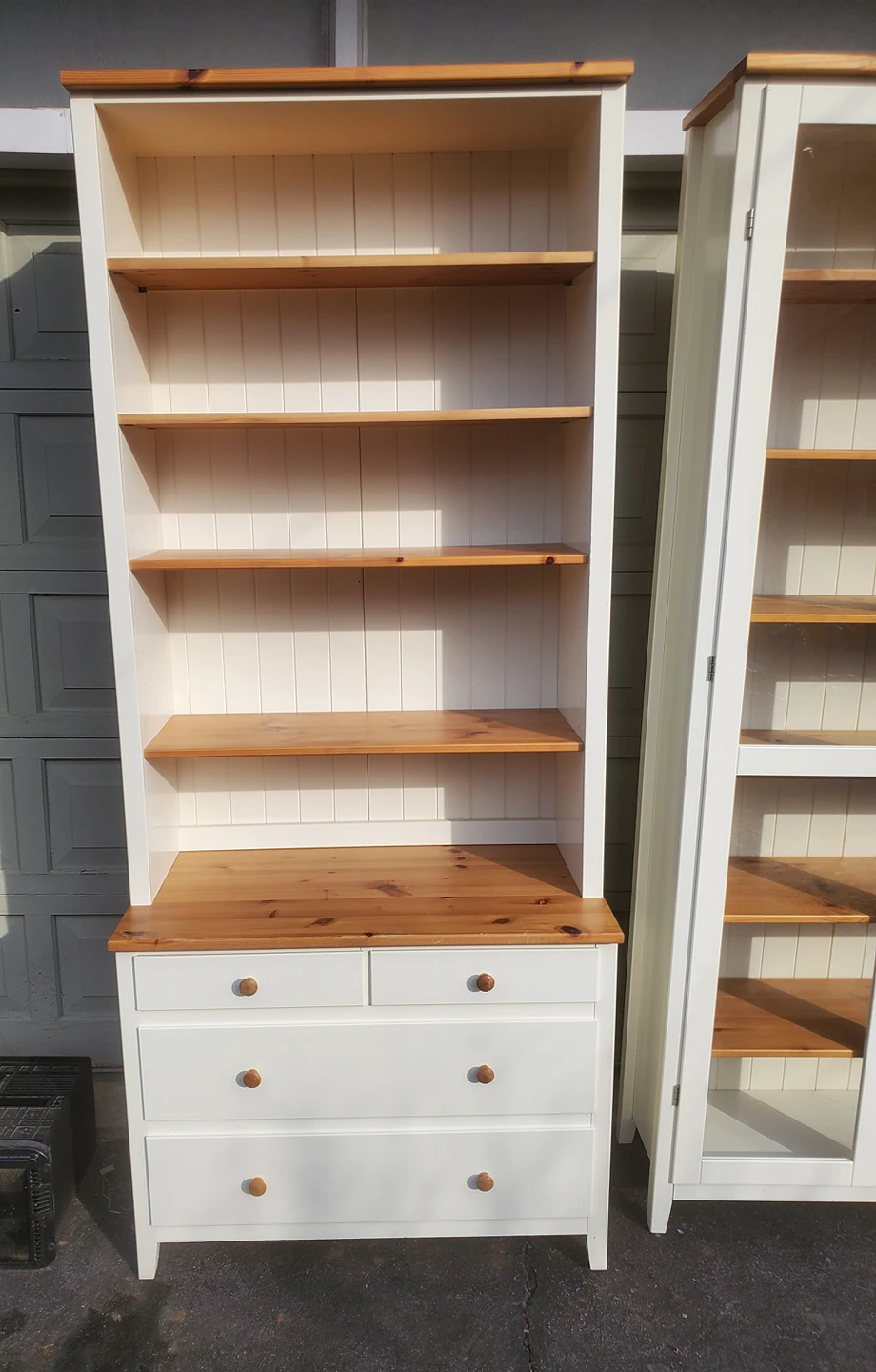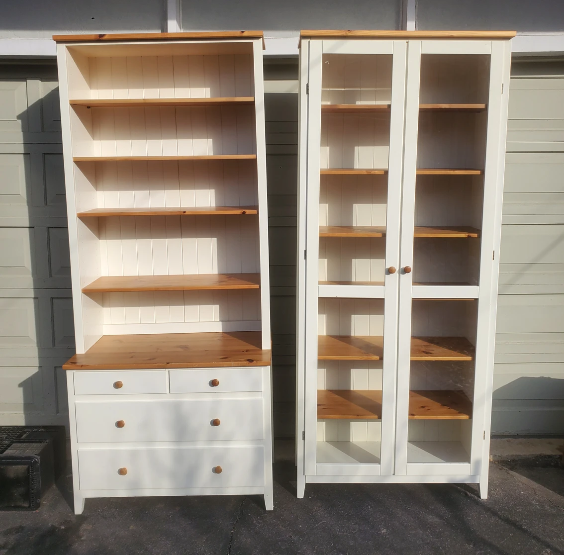 $400 for both. Both pieces in great condition. They have just been placed outside today on our driveway under cover for easy quick pick up. Both measure 7'.1" feet tall x 3' feet wide. Hutch is a 2 piece that seperates from the top half - Shelving unit is one piece. Pick up location Dufferin & Eglinton area.