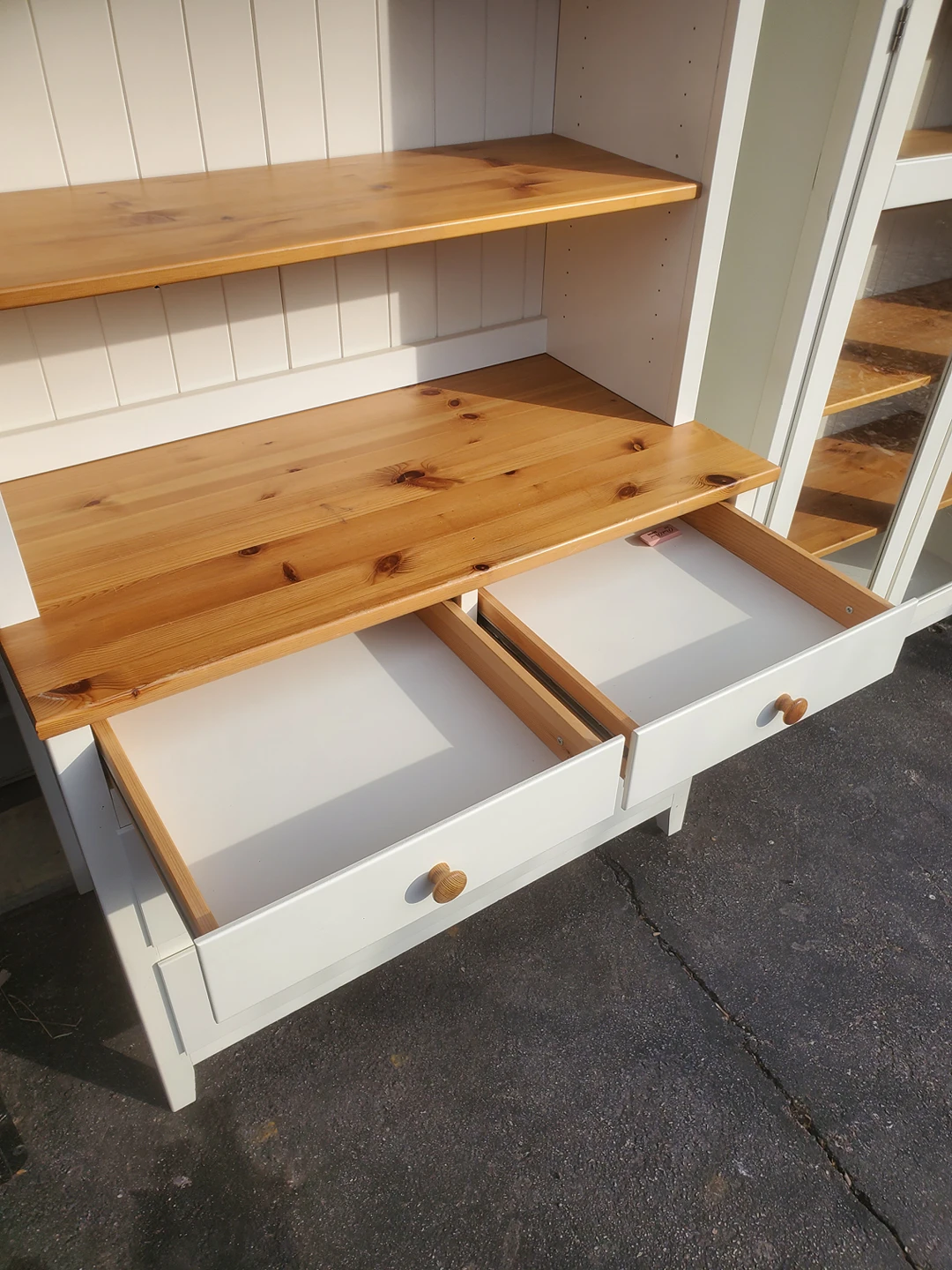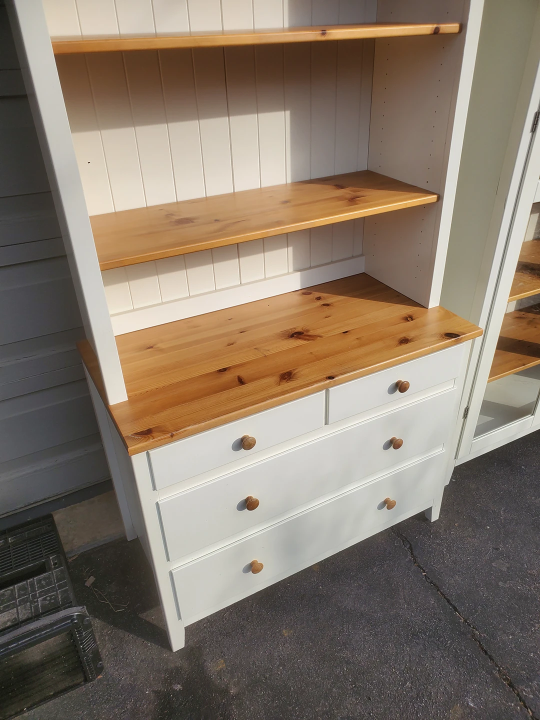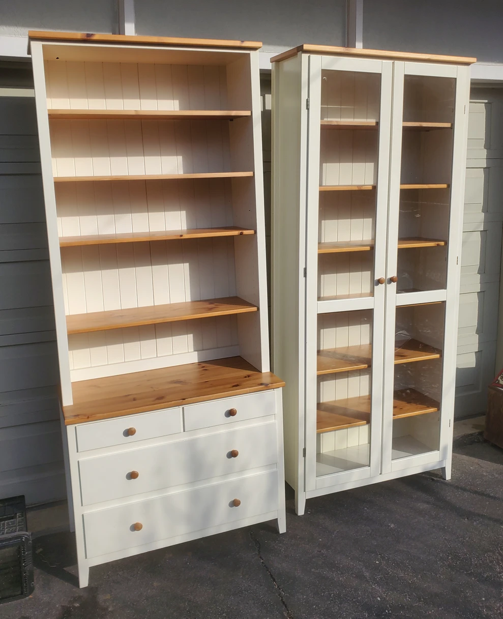 $400 for both. Both pieces in great condition. They have just been placed outside today on our driveway under cover for easy quick pick up. Both measure 7'.1" feet tall x 3' feet wide. Hutch is a 2 piece that seperates from the top half - Shelving unit is one piece. Pick up location Dufferin & Eglinton area.