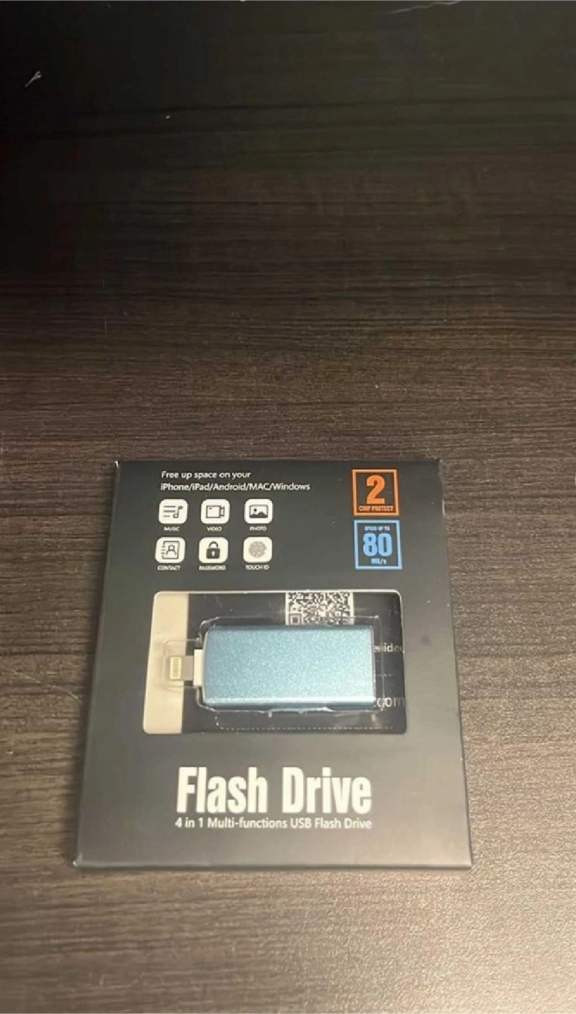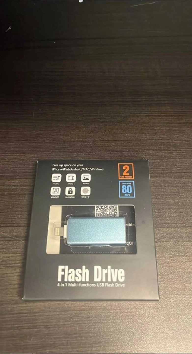 I'm selling a Flash Drive that is 4 in 1 multi-functions USB Flash Drive. It can free up space on your iPhone/iPad/Android/MAC/Windows. It comes with a box.
