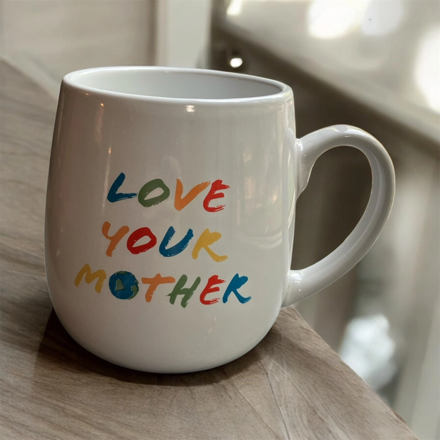 NWT Amici Home LOVE YOUR MOTHER coffee / tea mug. Enjoy your favorite beverage with this vibrant 'Love Your Mother' mug. Featuring a playful design in red, yellow, green, and blue, it's perfect for adding a splash of color to your day. Perfect for celebrating Earth Day and your love for the Planet! Measurements approximate: 4.25" H X 3.25" D A mix of classic and contemporary - great addition to any mug collection. I ship using recycled material within my home to reduce waste. The package will be wrapped with care if requested