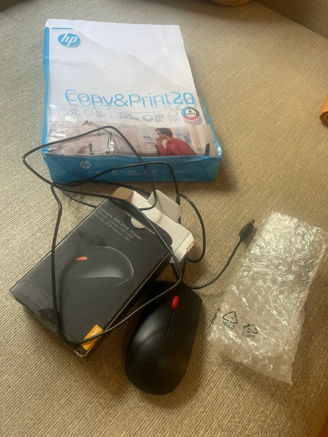 Mouse brand new with packaging Open package HP Printer Paper