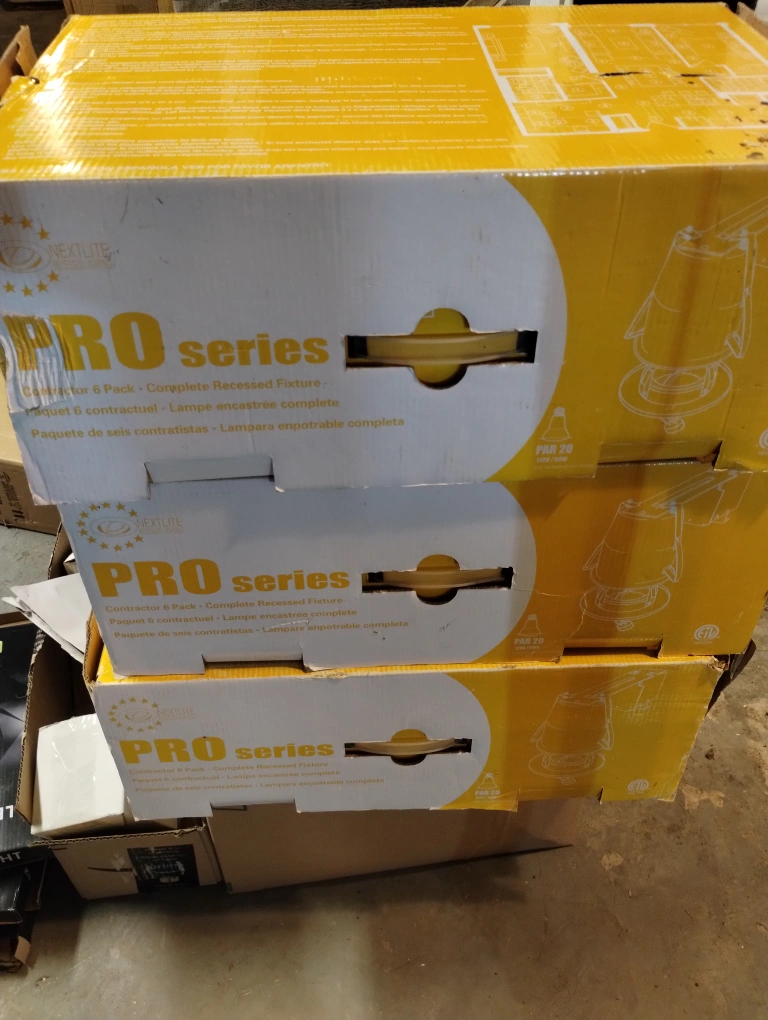 Selling 3 a 6-pack of NEXTLITE Pro Series recessed lighting fixtures but one box has five. These are complete recessed fixtures, perfect for any contractor or DIY enthusiast looking to install new lighting. They come in the original box. selling each box for 100 or send me offer