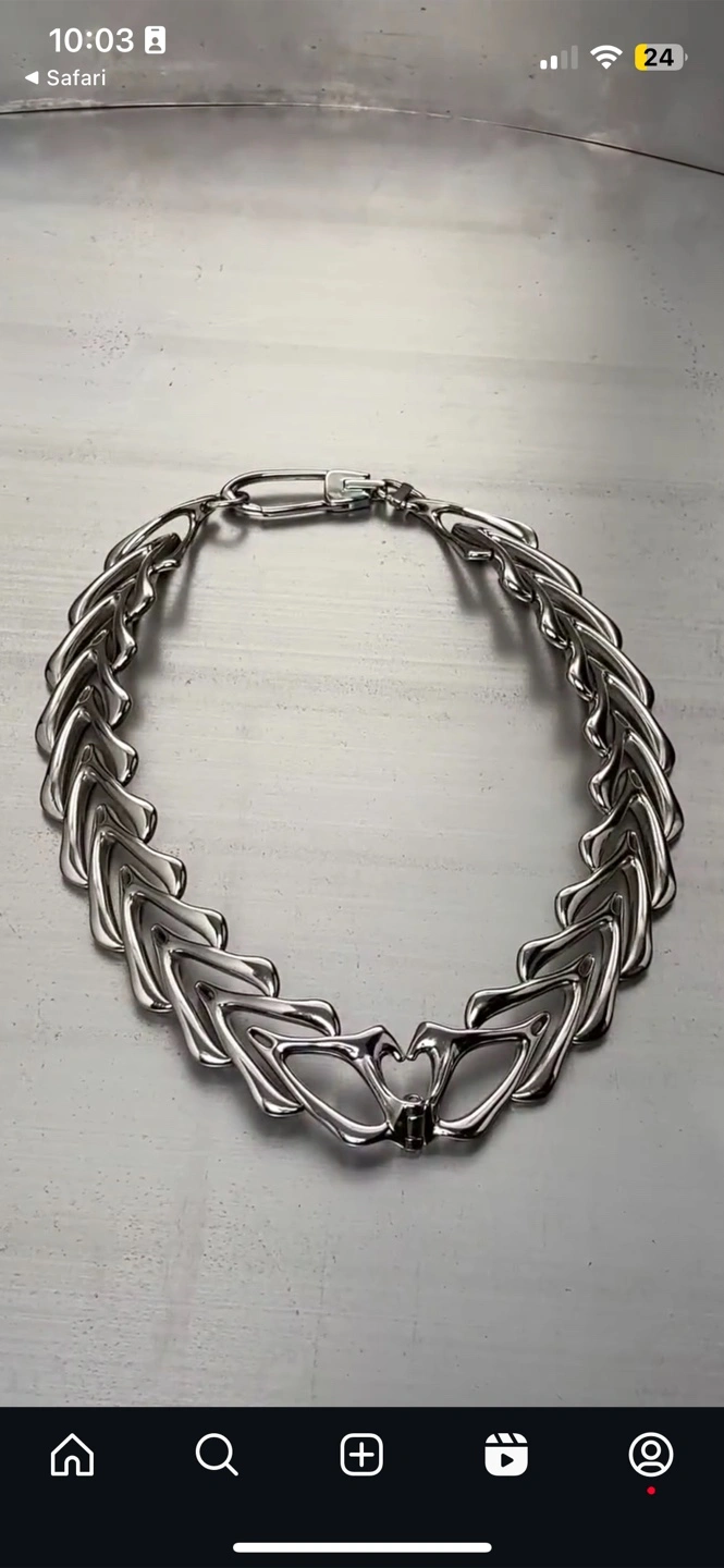 Created in collaboration with French designer Kacimi Latamène, the Vitaly “Paradigm” chain is constructed from his signature wishbone structure. Each recycled stainless steel link has an alien appearance, and is engineered with articulating hinges that allow the piece to contour to your collarbone as you move. This chain was re-released last year and sold out. Originally $250. Only worn 2-3 times at events. It’s a stunning unisex statement chain, not too heavy and wearable. Vitaly fans have requested its re-release again and again. Vitaly is a Toronto brand often spotted on celebrity musicians. Sharing official product photos. Happy to send photos of mine upon request—it’s currently stored in its original box with polishing cloth.
