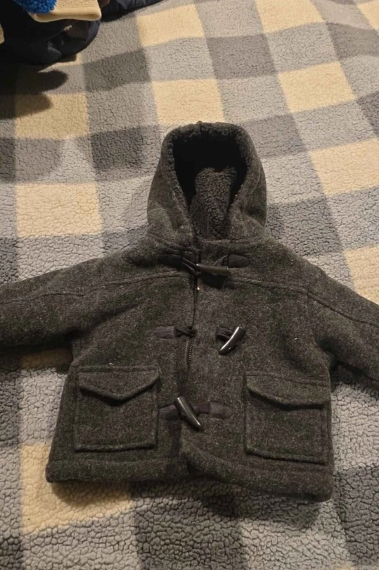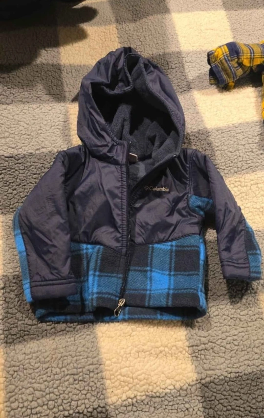 Selling a bundle of kids' jackets! There's a grey GAP hooded jacket with toggle closures, a Columbia jacket with a navy top and blue plaid bottom, and a yellow and blue plaid jacket with a sherpa lining. Great for layering! all boys 3 to 6 momths $20 for all