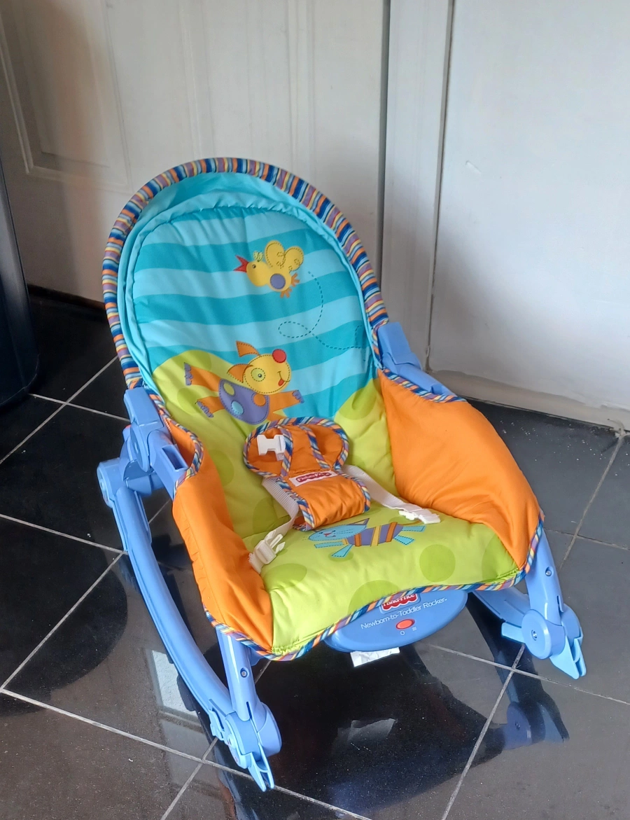 Selling a Fisher-Price Newborn-to-Toddler Rocker. It's in great shape and ready for a new home! This rocker is perfect from newborn to toddler age. It has a cute design with animals on the seat and a secure harness also vibration on the seat. it's clean and no smell.