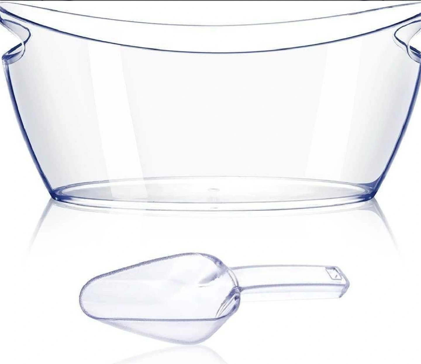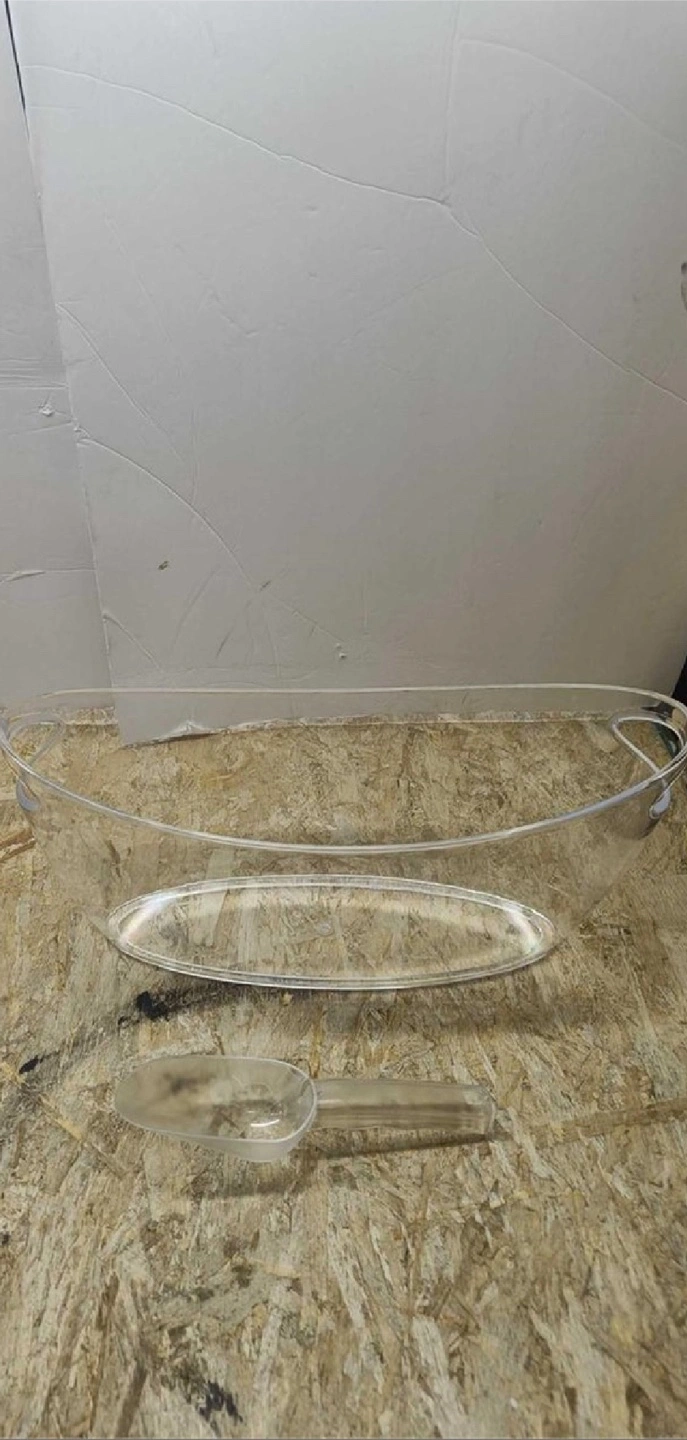 Selling a clear acrylic ice bucket, perfect for keeping your drinks cool at parties or gatherings! It comes with a handy scoop. It's in great condition and ready to use