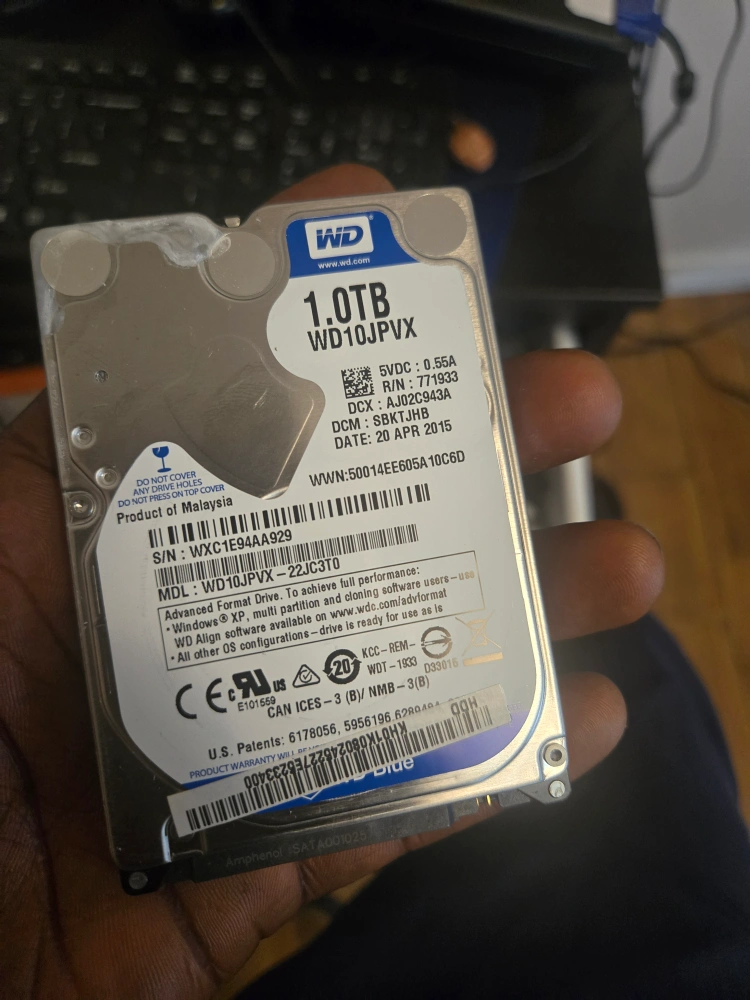 Selling a WD 1.0TB hard drive, model WD10JPVX. It's a 5VDC drive, manufactured on 2015 April 20. Perfect for upgrading your laptop or for data storage!