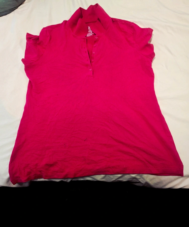 A bright pink polo shirt from Faded Glory! It's in good condition and perfect for casual wear. Size is 14/16.