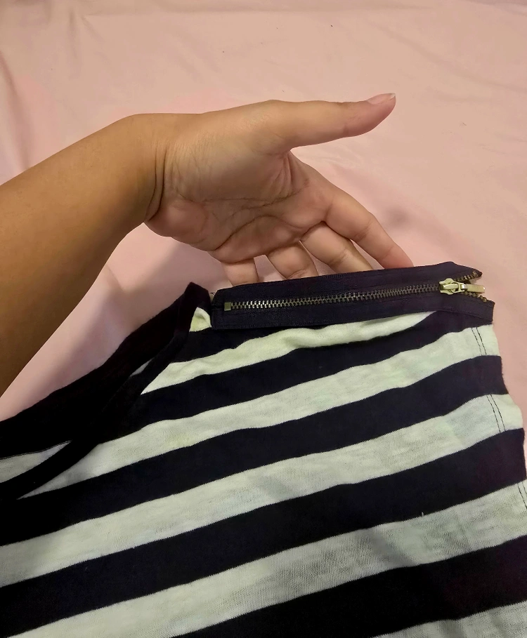 Cute striped top from Gap! It features a unique zipper detail on the shoulders. Size is medium and it's in great condition!