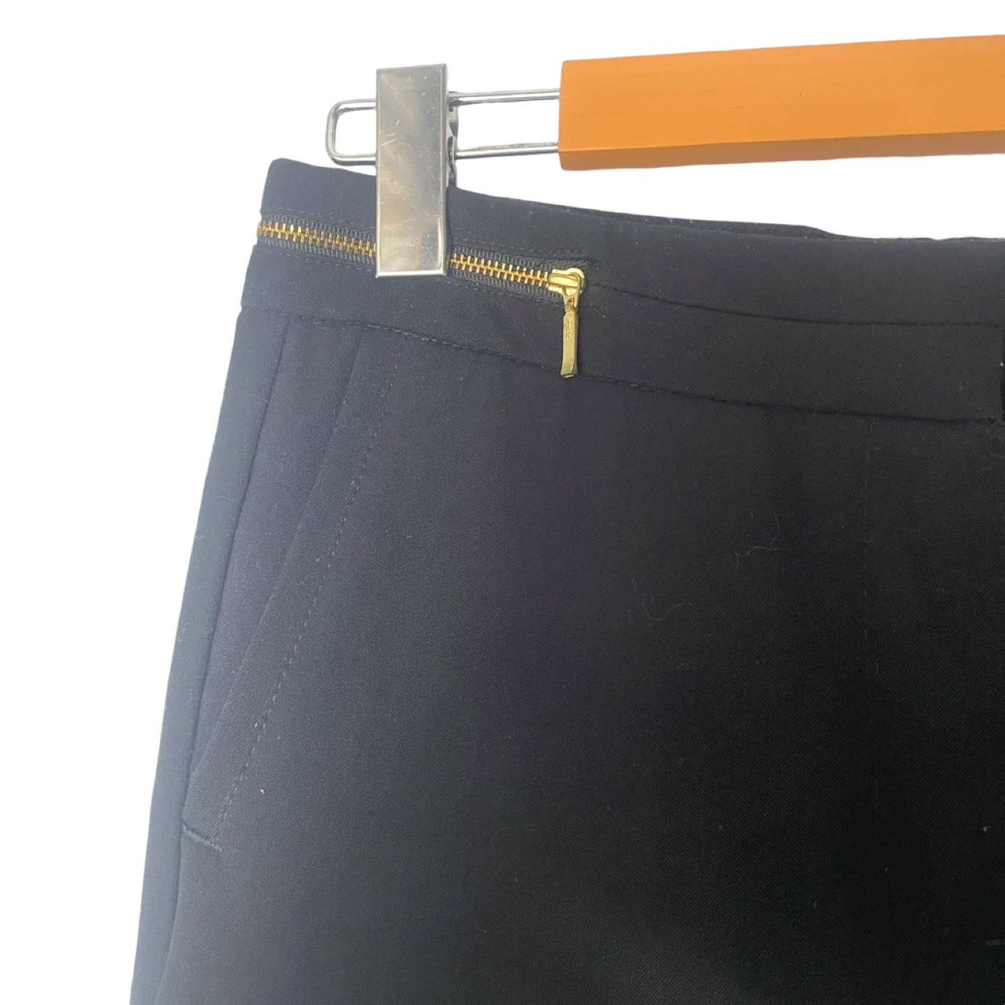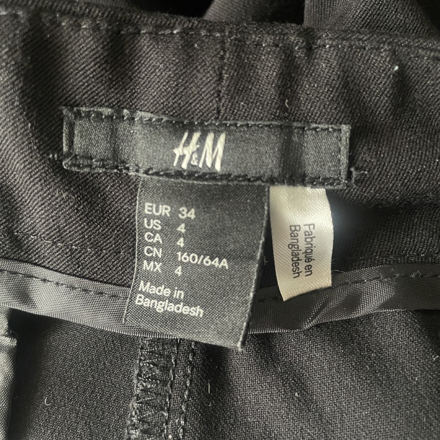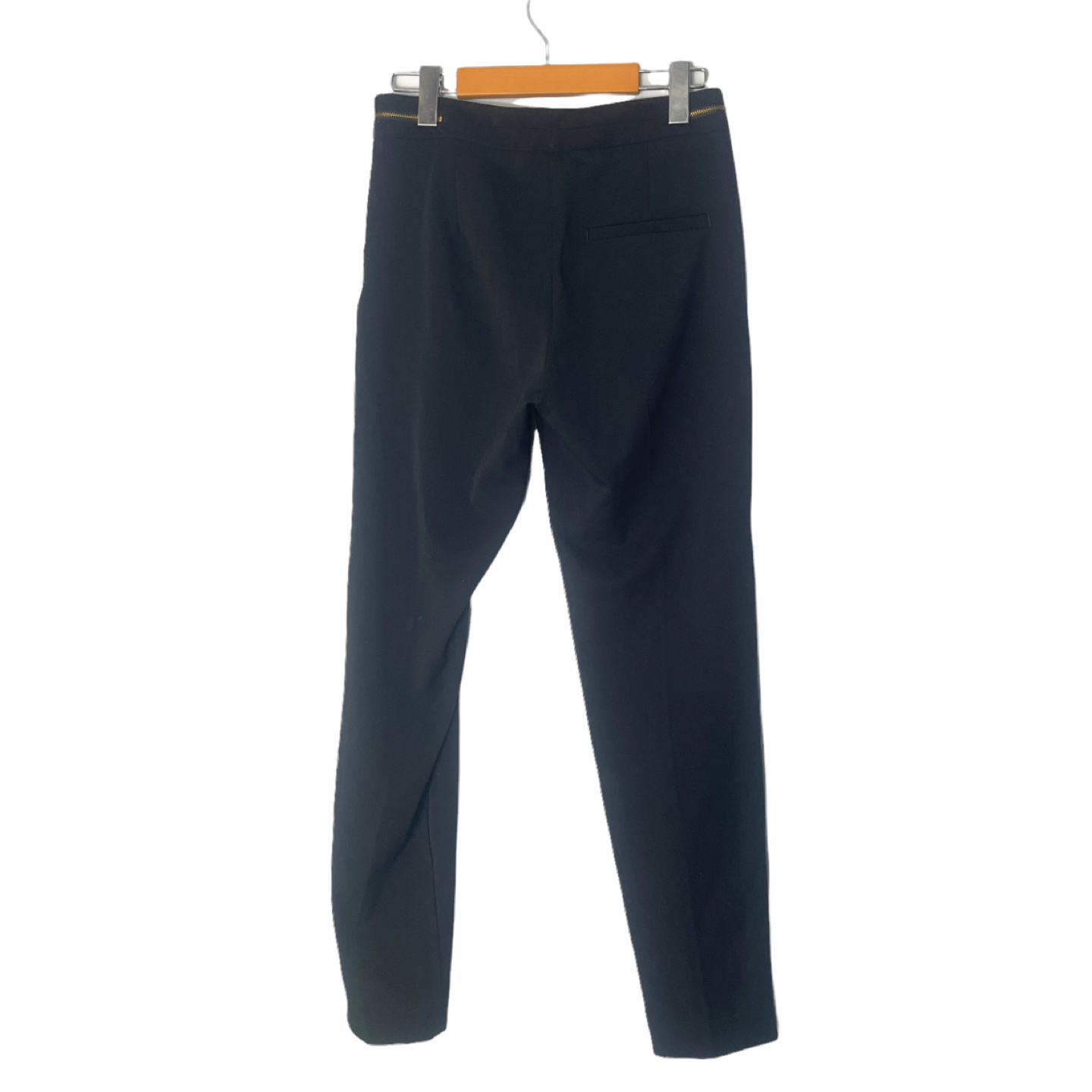 H&M Black Pants Size 4 Excellent condition Gold zipper decor on the waistband Includes extra button Length: 37" approx Waist: 28" approx Rise: 10" approx Inseam: 29" approx More measurements available upon request.