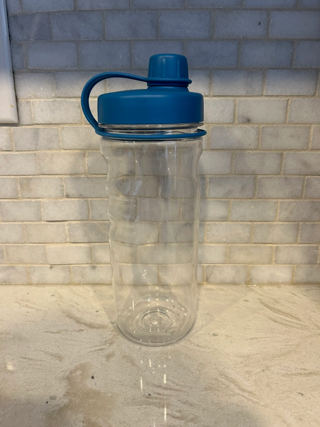 Selling a plastic 24oz water bottle in blue! Dishwasher safe. It's in great shape and ready for a new home. Perfect for staying hydrated on the go! 9”x3”