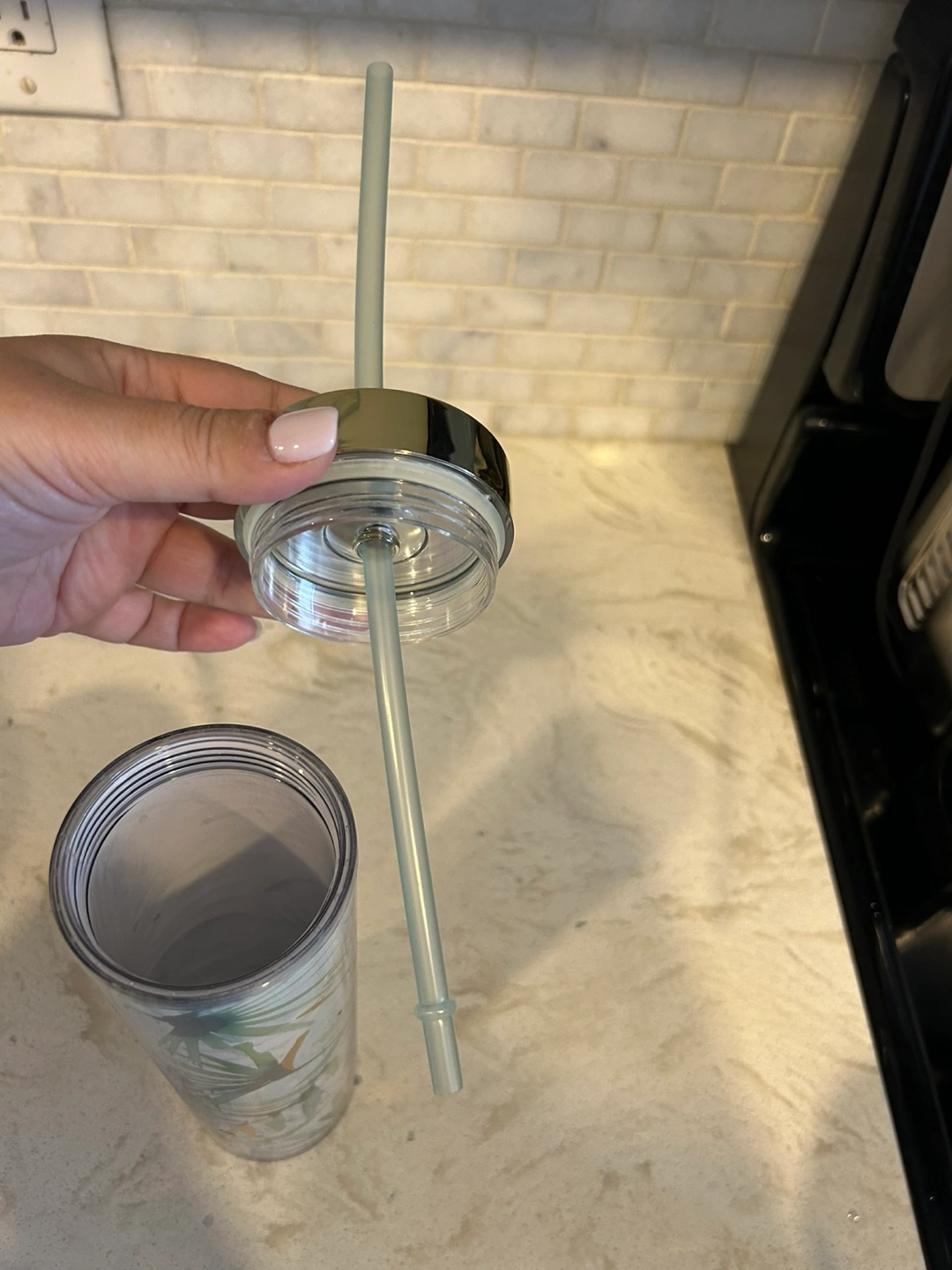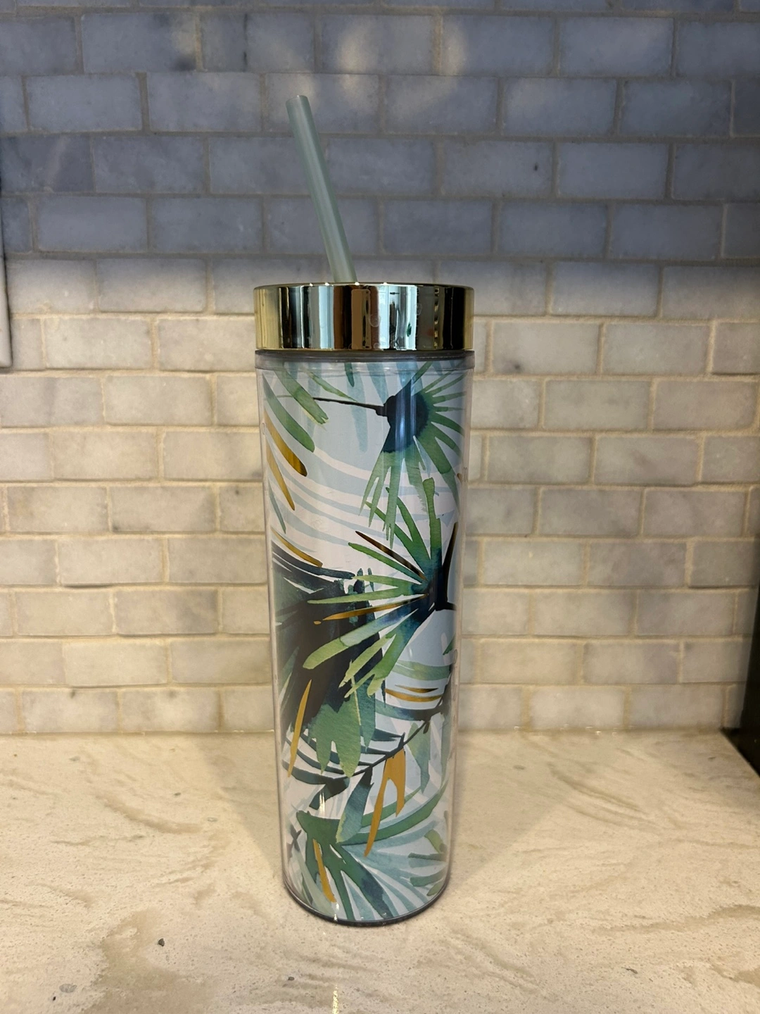 Selling a 16oz tumbler that comes with a straw. It has a tropical leaves design. It's in great condition and ready for a new home Approx: 8.5”x2.5”