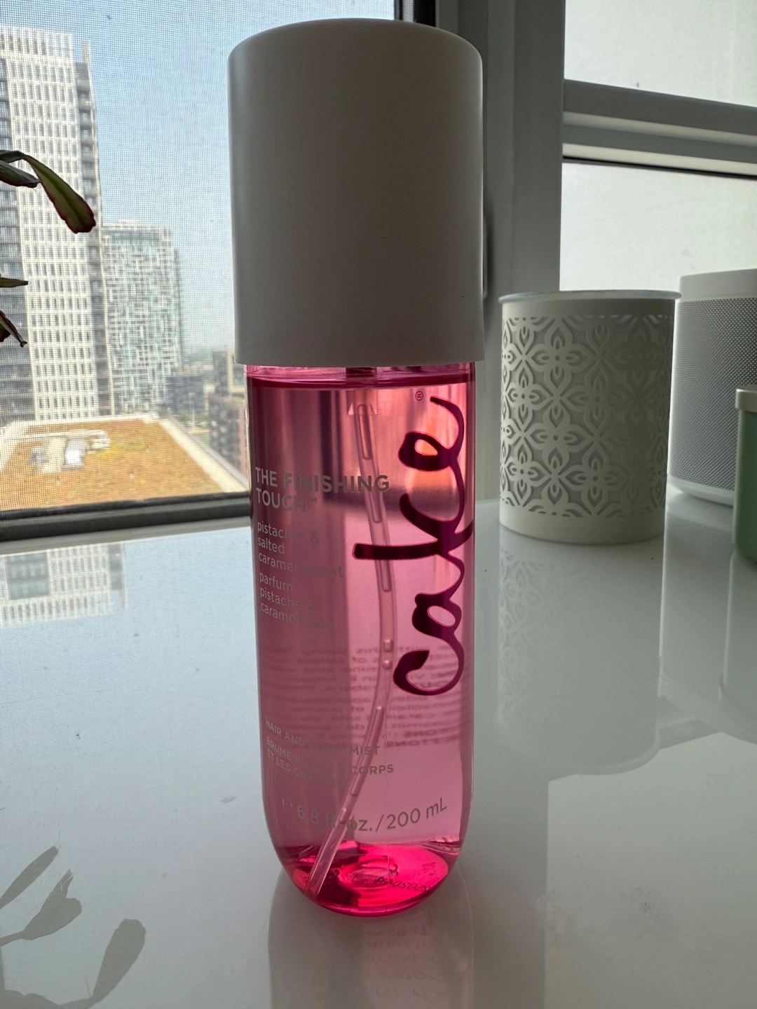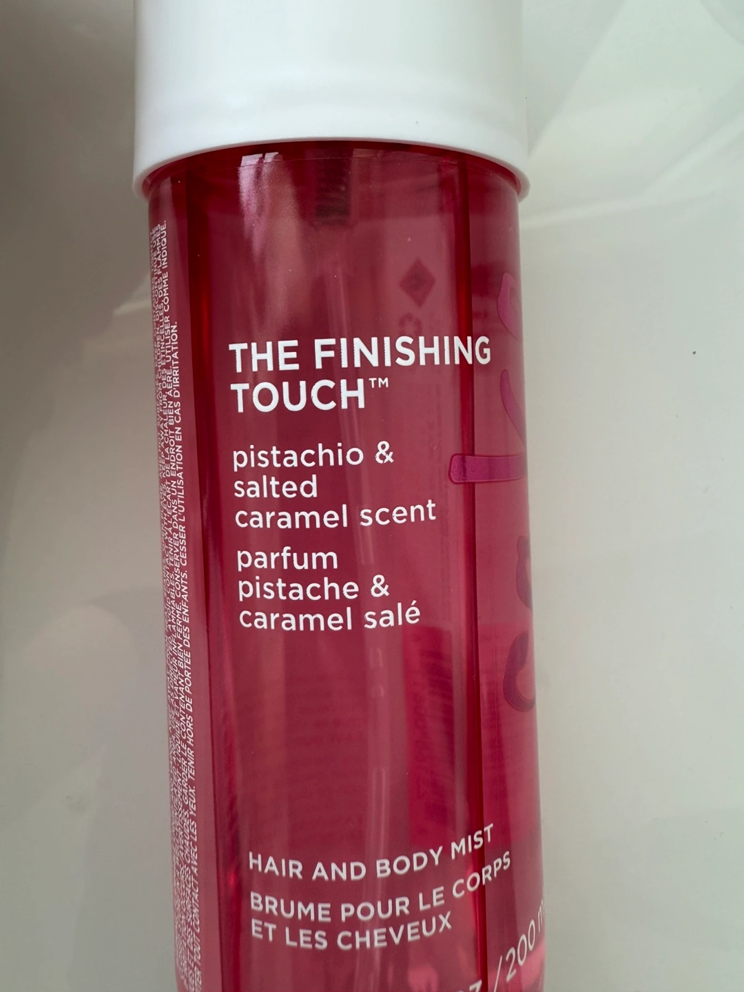 Selling a Cake Beauty The Finishing Touch hair and body mist. It has a lovely pistachio and salted caramel scent. It's a hair and body mist in a 6.8 fl oz / 200 mL bottle