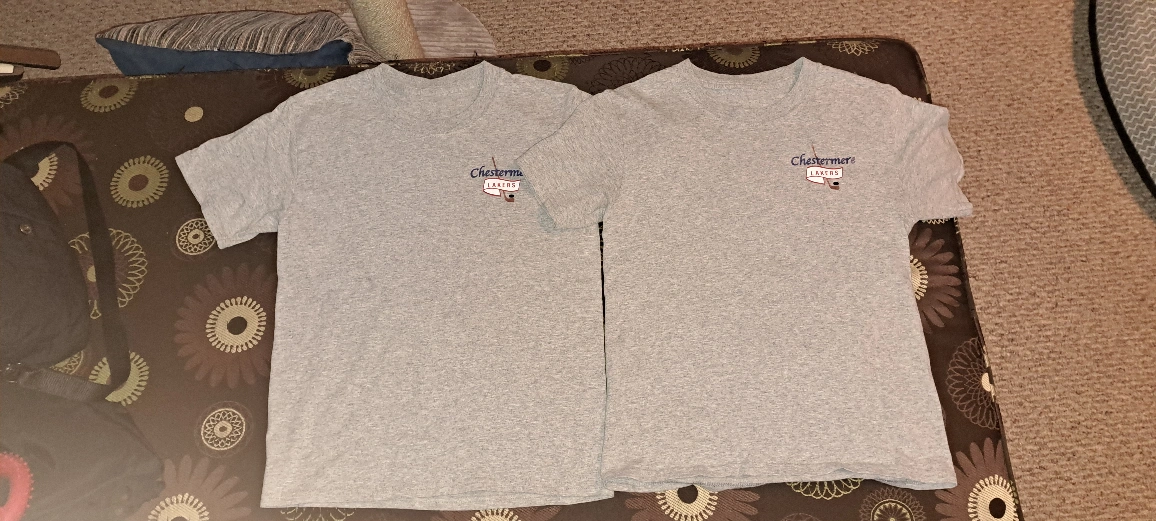 Selling two Chestermere Lakers t-shirts in grey. They're in almost brand new condition, lightly used, and ready for a new home! 5 dollars per shirt OBO. Perfect for showing your Chestermere pride or just for casual wear. If you have any questions, feel free to ask. Pick up in Chestermere, Strathmore, or Calgary from pet friendly, smoke-free home.