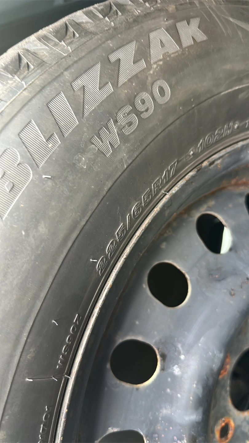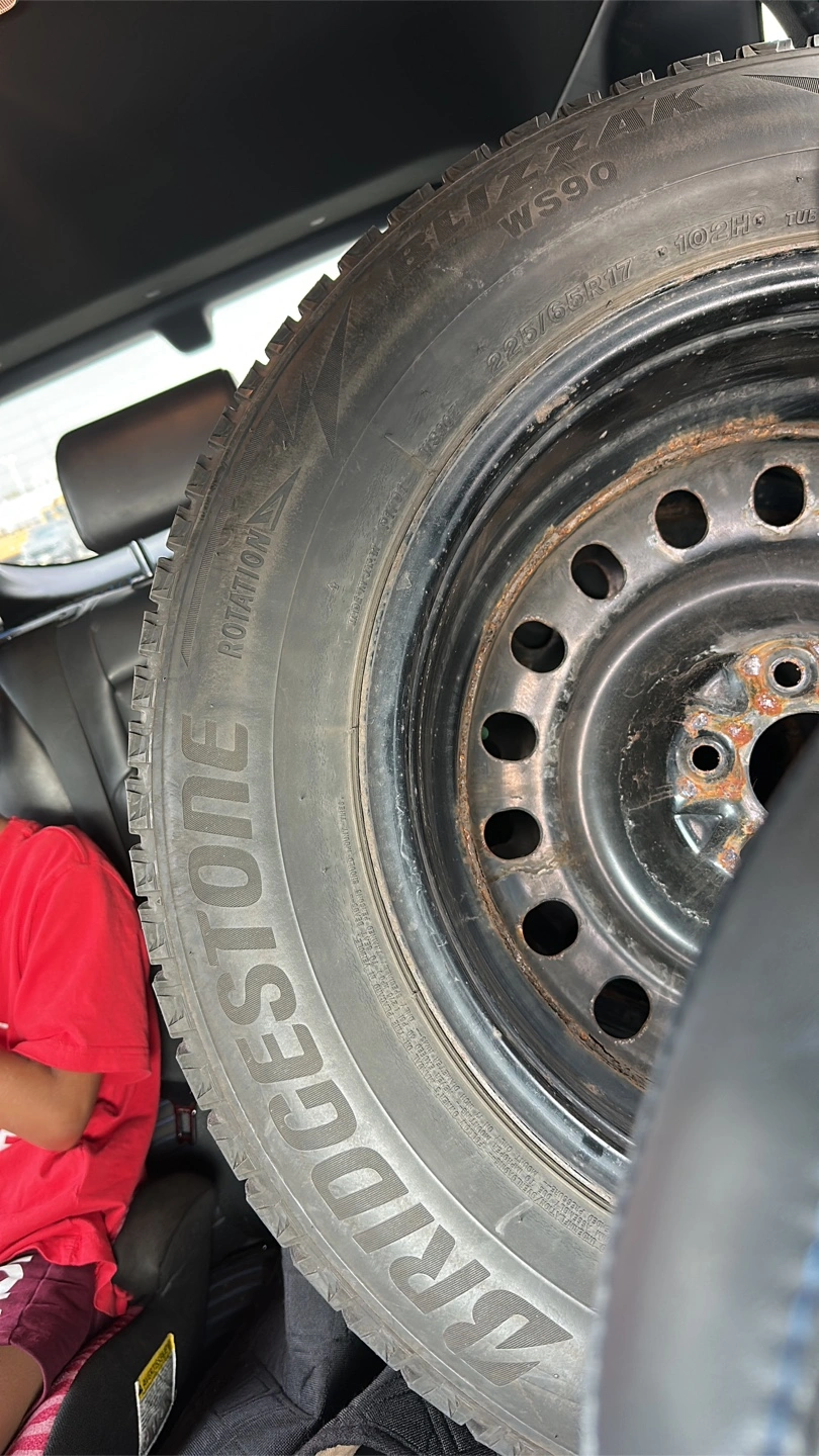 Selling a Bridgestone tire, size 225/65R17 with Rims. It appears to be in good condition and ready for use! I got All weather tires that’s why selling them.