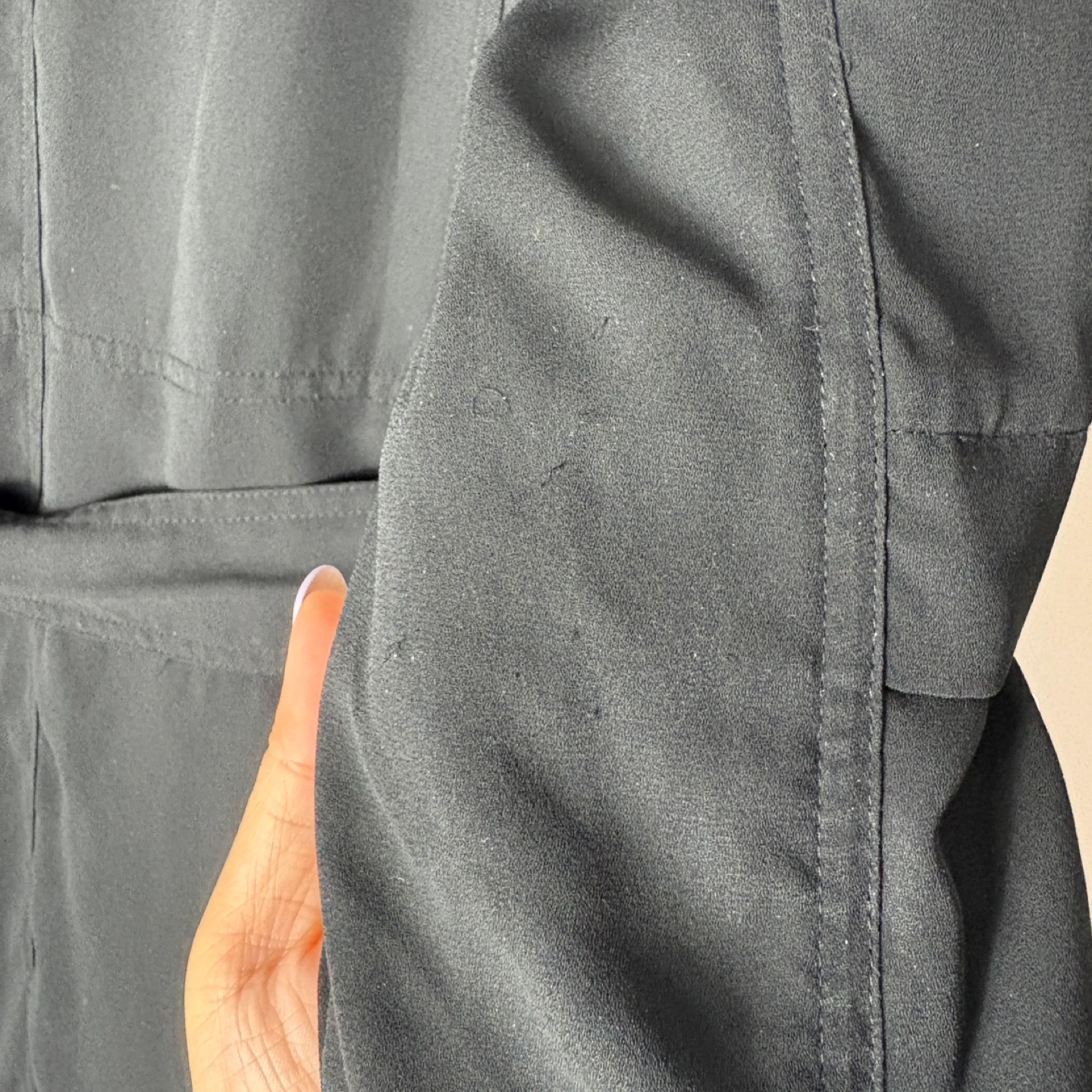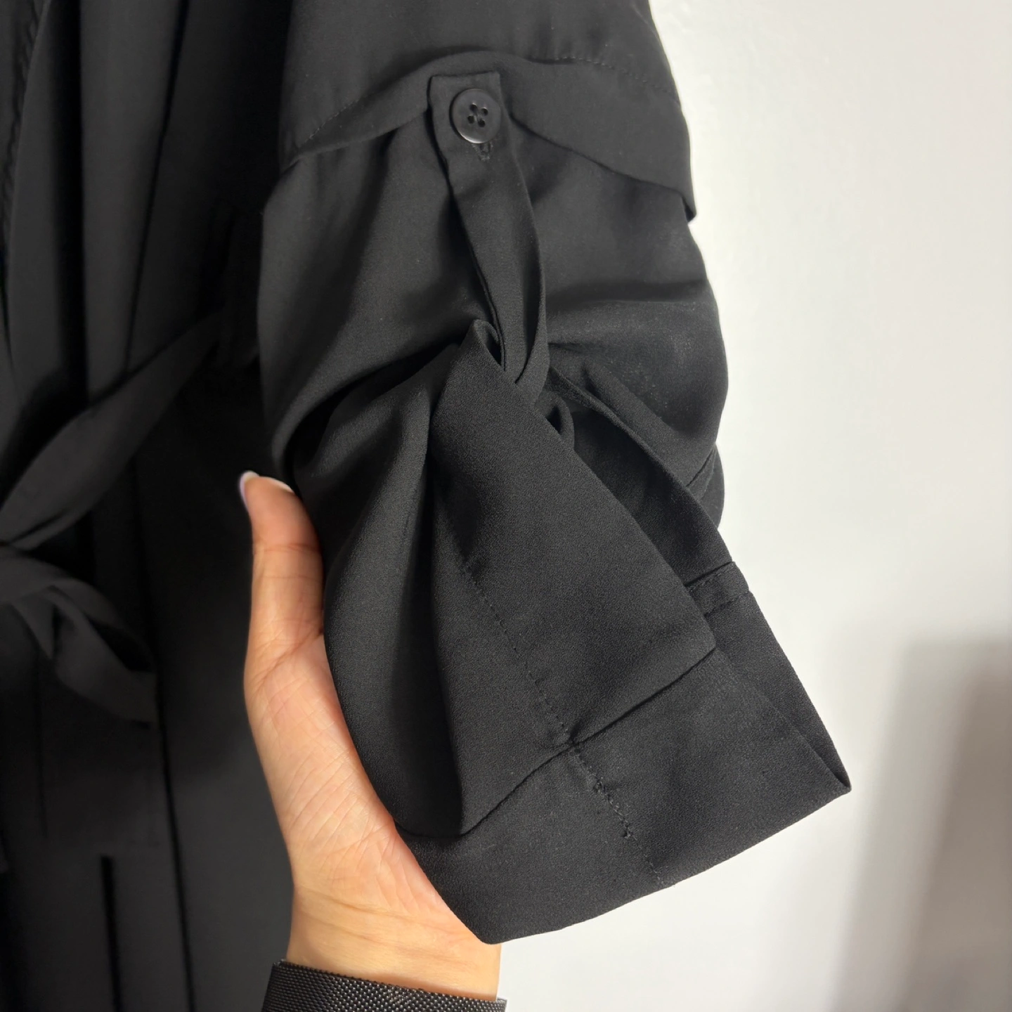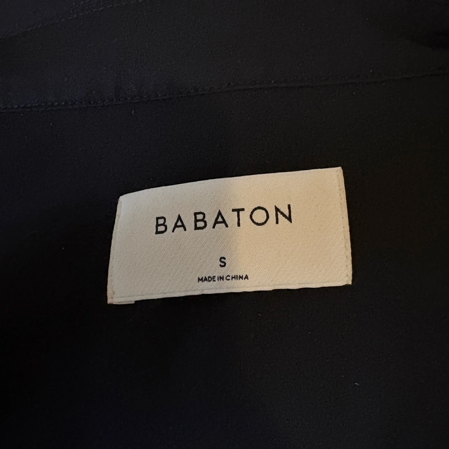 Aritzia Babaton Black Quincey Flowy Belted Jacket Size Small Good condition - very minor thread snags on the right elbow (see photos) This modern jacket is tailored with a silky fabric that stays looking polished all day long. Simple, precise detailing gives it a streamlined appeal. Lightweight for spring or fall. Unlined. Features: Removable belt, inseam pockets, small shoulder pads for added structure, button cuff sleeves, relaxed fit Measurements available upon request. Styles: autumn basics business casual capsule wardrobe careerwear classic contemporary dark academia dressy fall fashion feminine flowy layering minimalist modest neutral normcore office preppy spring winter workwear