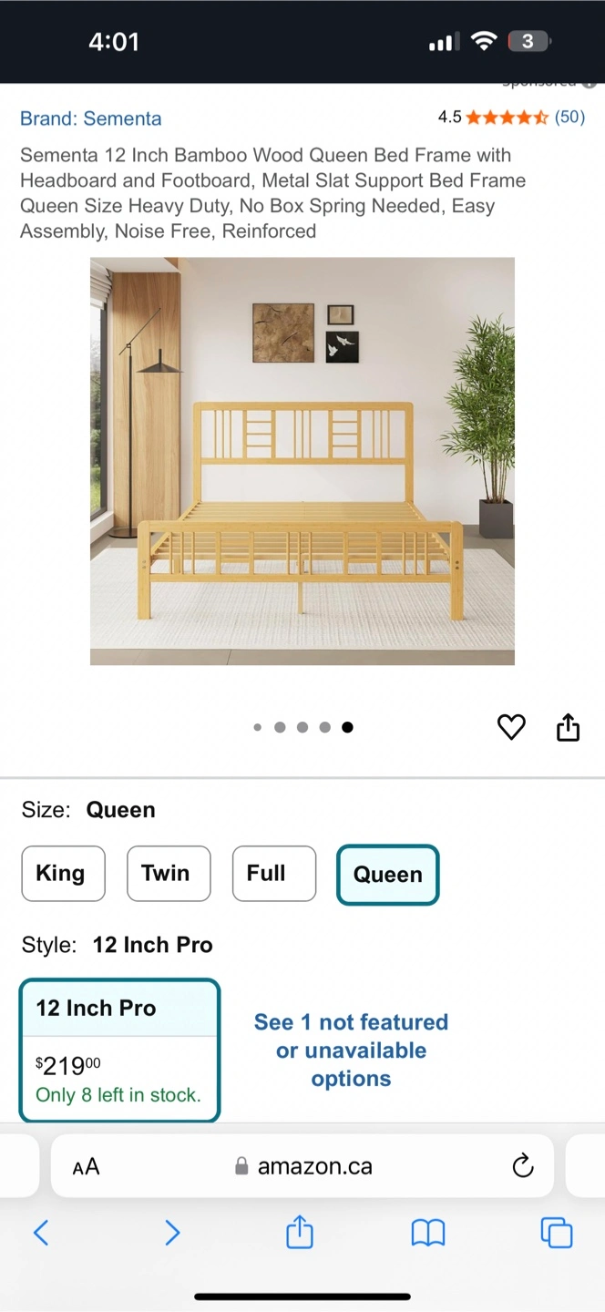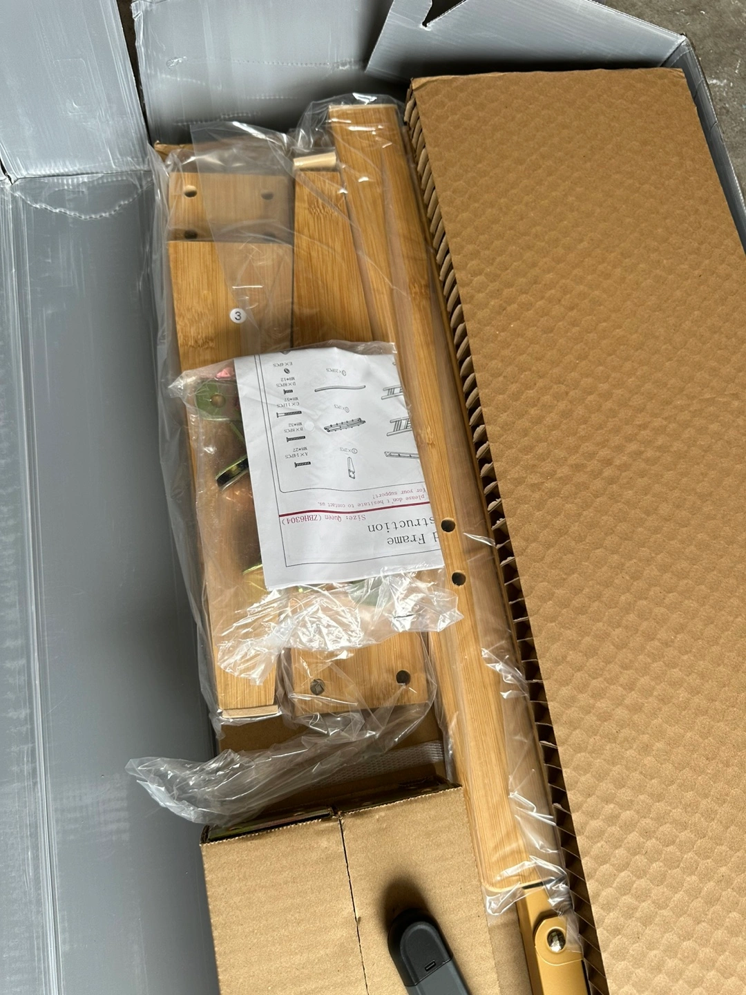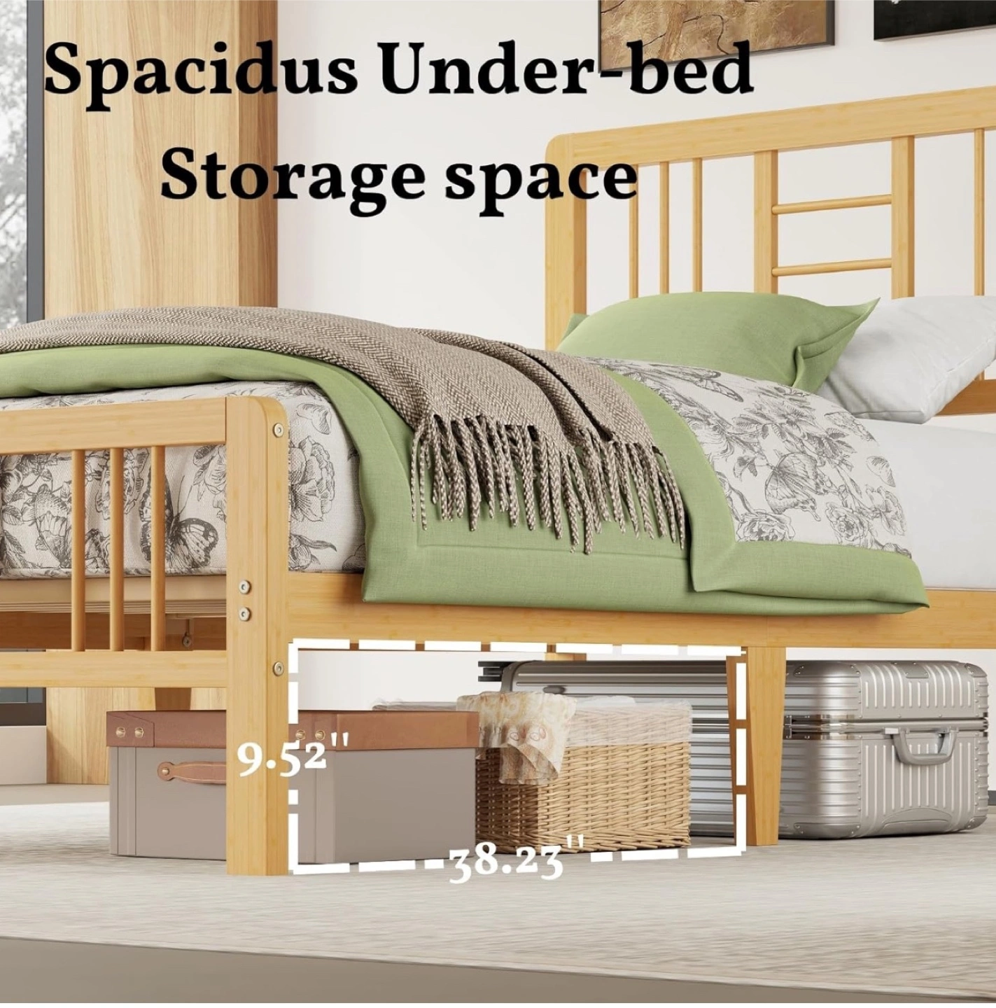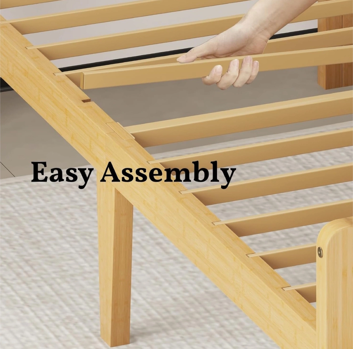 Looking to upgrade your bedroom? I'm selling a queen-size bed frame made from high-quality bamboo and metal. - Dimensions: 80" x 60" x 35" - Weight capacity: 1000 lbs - Provides spacious under-bed storage - Easy to assemble