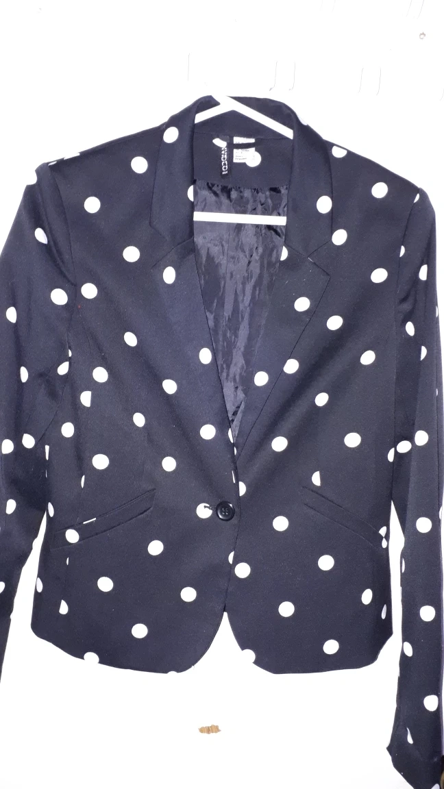 Selling a cute H&M Divided blazer with a fun polka dot pattern! It's a size 8 and in great condition. Perfect for adding a bit of style to any outfit