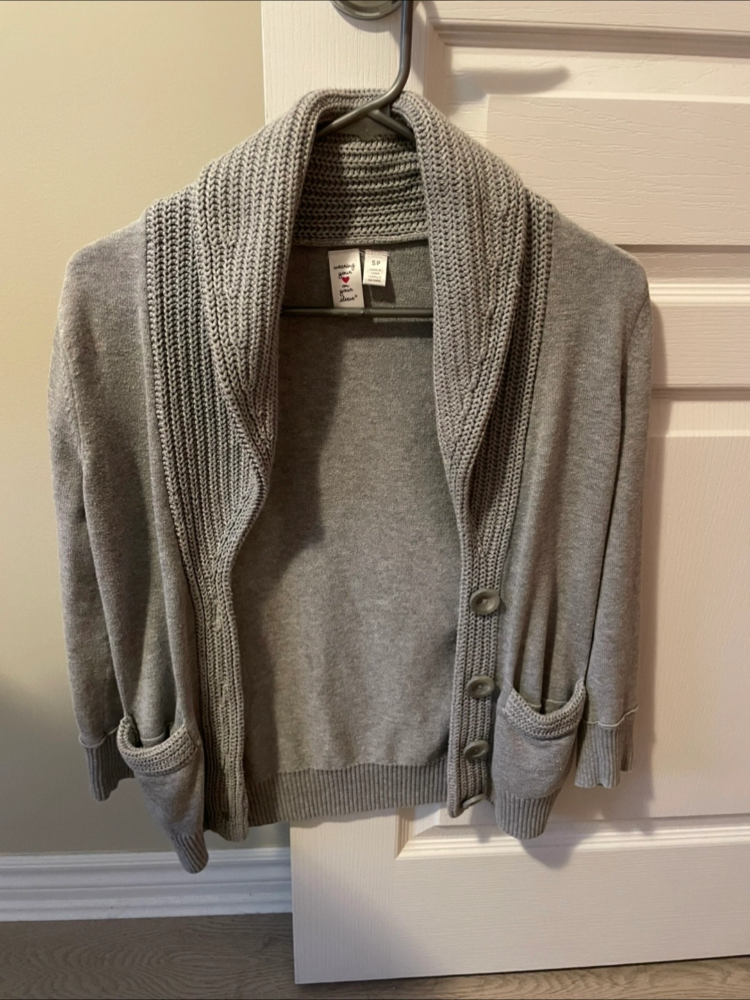 A woman small size cardigan in a lovely grey colour. Perfect for layering on those cooler days!