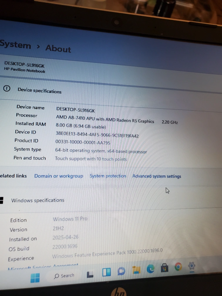Selling an HP Pavilion laptop. It's in good working condition and ready for a Touchscreen 14inch Antiglare wide-screen with led backlight Full HD with a resolution of 1366 X 768 pixels AMD Radeon graphics AMD Quad-core A8-7410 cpu @2.5ghz 6th gen 8gb ddr3l sdram 740gb hdd harddrive Webcam with integrated mic Bluetooth connectivity Supermulti DVD/cd burner Ethernet Lan rj-45 port Wireless 802.11b wi-fi network Dual HD built-in speakers Multi-format digital media card reader 2 superseded usb 3.0 port Usb 2.0 port Hdmi output Headphone microphone combo jack Windows 11pro already activated Microsoft office 365 2024 permanently licensed Lithium ion battery included Original hp charger included Price is negotiable Willing to meet up at Kipling Station owner! The battery health is at 97%.