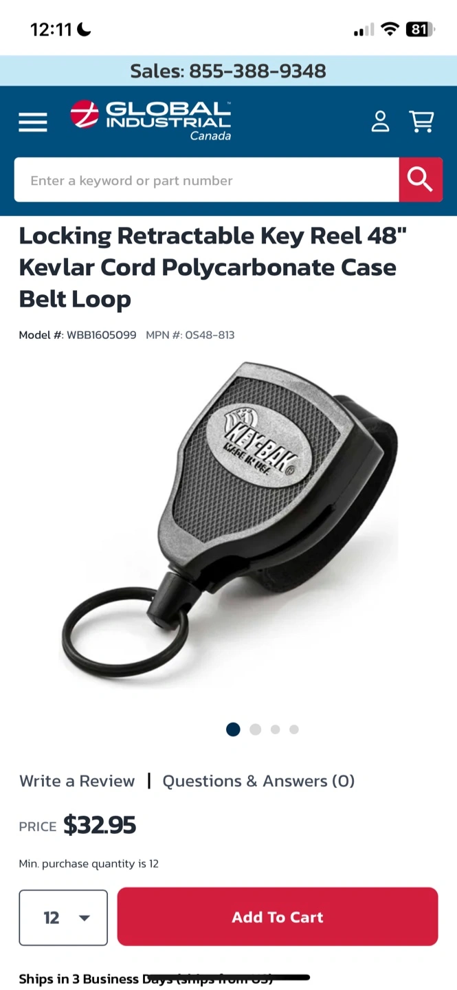 Selling a Key-Bak key reel with a 48" Kevlar cord Model #S48-LE Great for keeping your keys secure and easily accessible