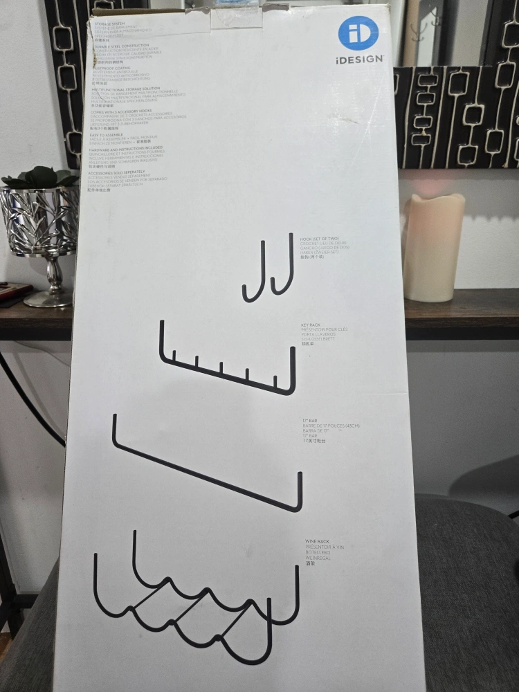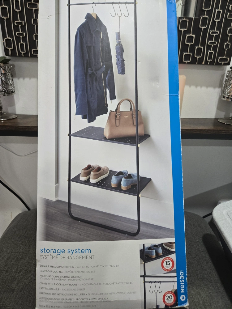 Selling an iDesign storage system in excellent condition! It features durable steel construction with rust-proof coating. Comes with 3 accessory hooks and includes hardware and instructions for easy assembly. Perfect for organizing your space!