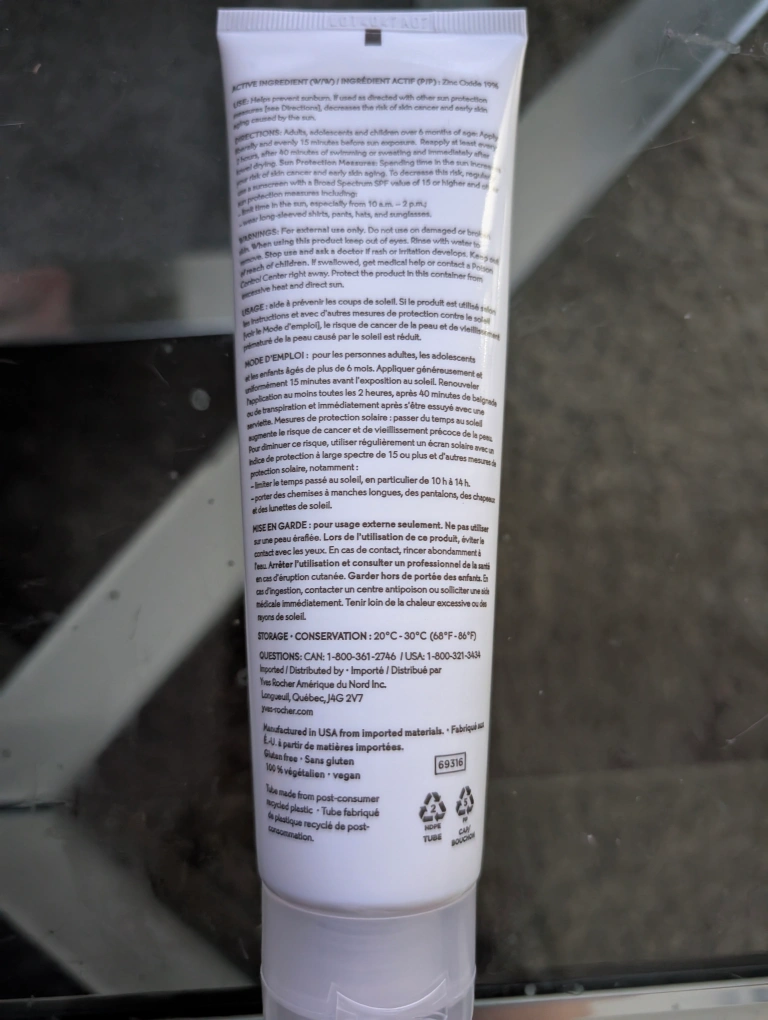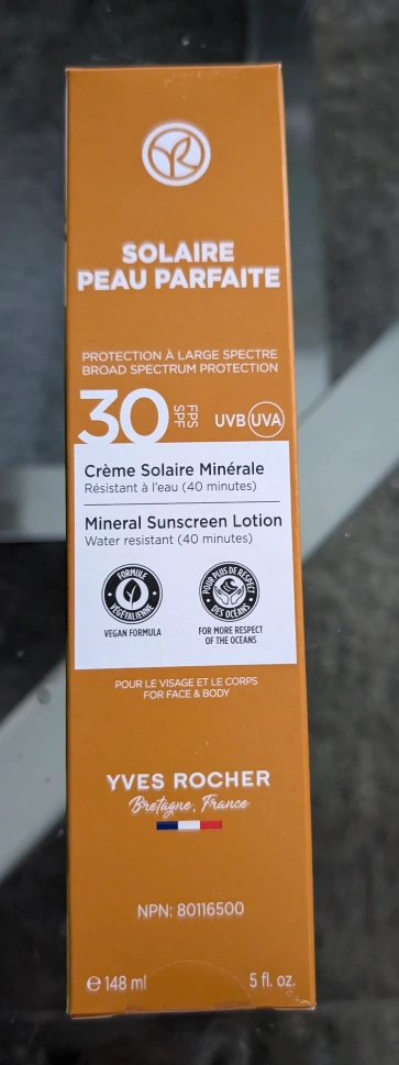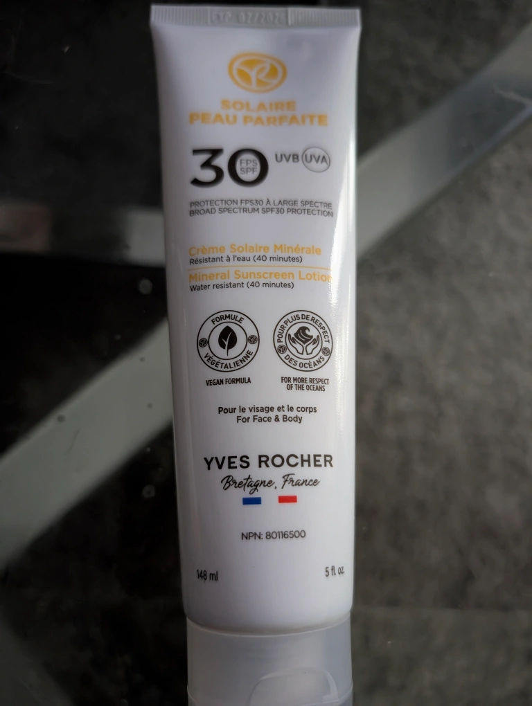 I'm selling a brand new Yves Rocher Solaire Peau Parfaite SPF 30 mineral sunscreen lotion. It's water resistant for up to 40 minutes. It's a vegan formula and is for face and body. Expiry date is February 2026 Used once. Typically new. The consistency is too heavy for my skin.