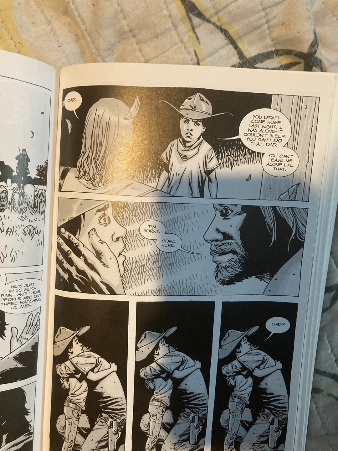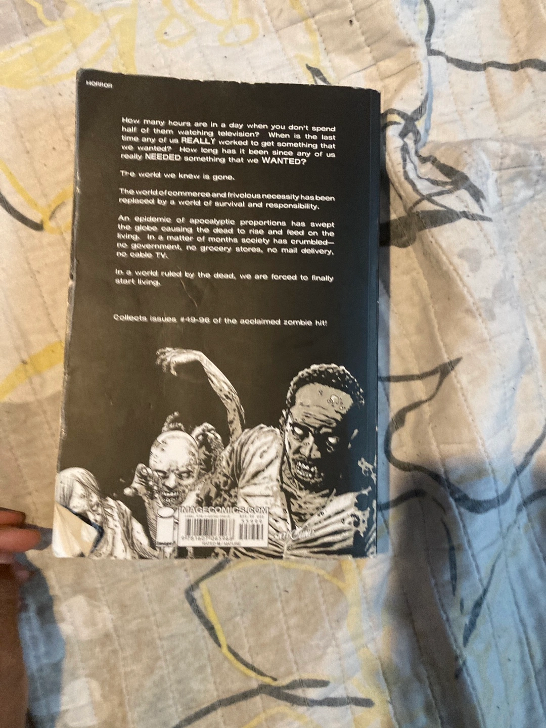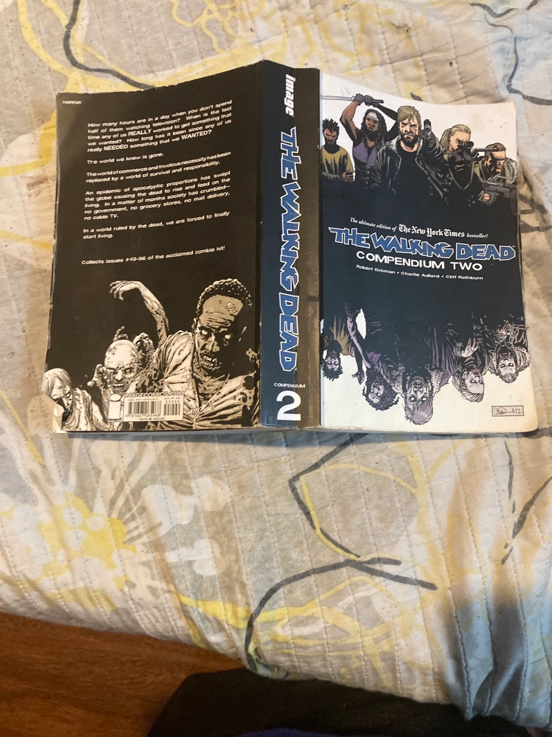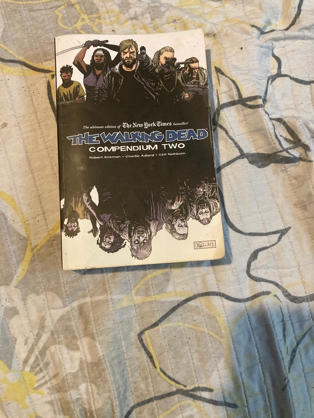 The walking dead book no colour very interesting book about a zombie invasion and a group of random people join each other as a community to fight of zombies, find out what happens next!