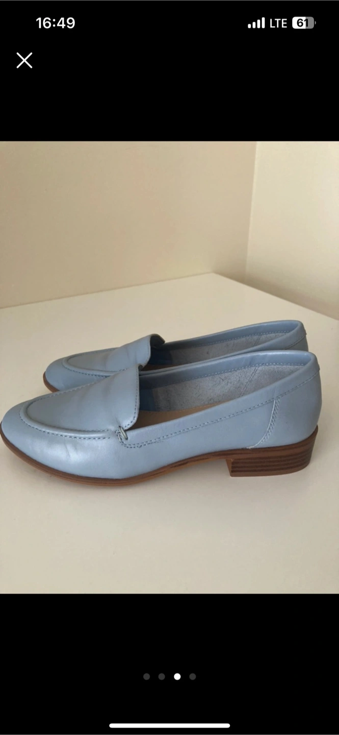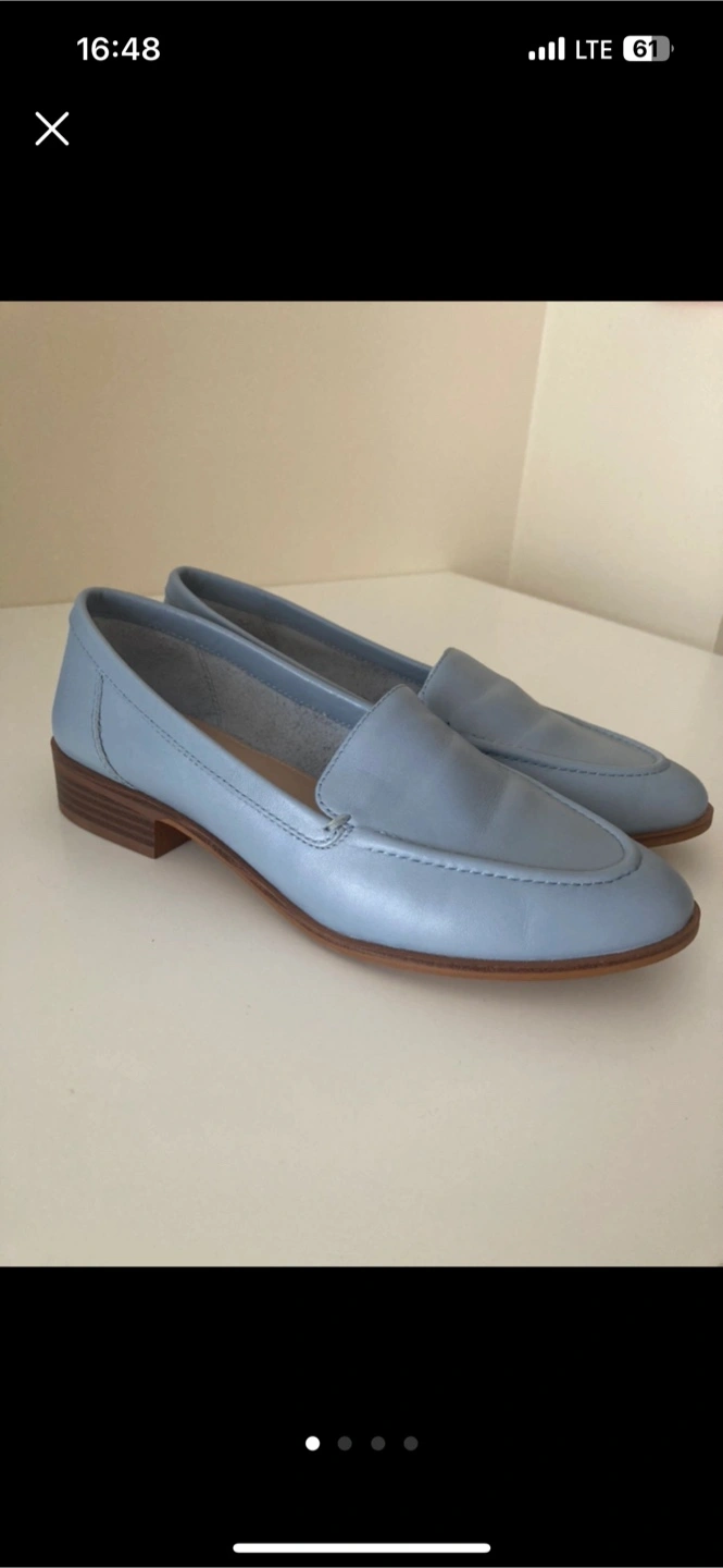 New leather loafers Size 6.5 but it will fit 6 or small feet 6.5 I like them a lot, but they don’t fit me and I was going to exchange them but forgot to do that. Never worn them.