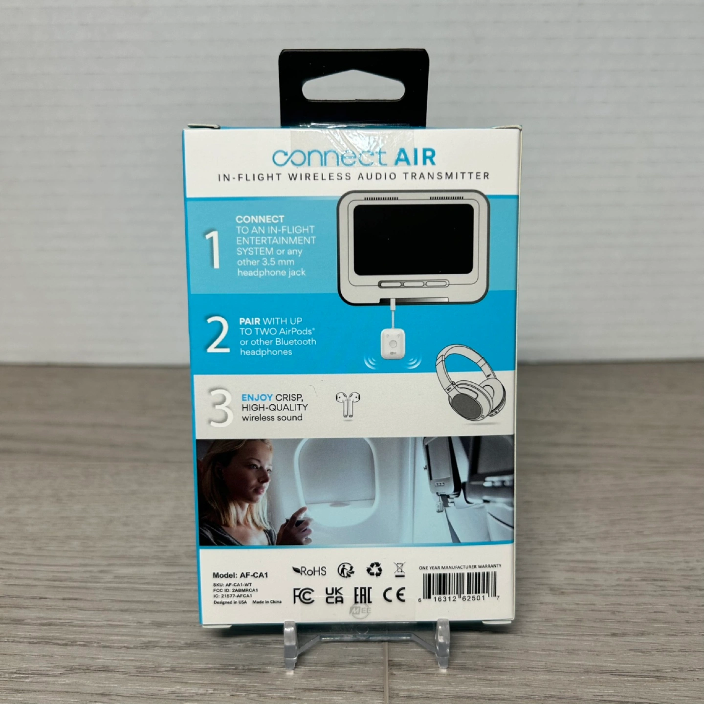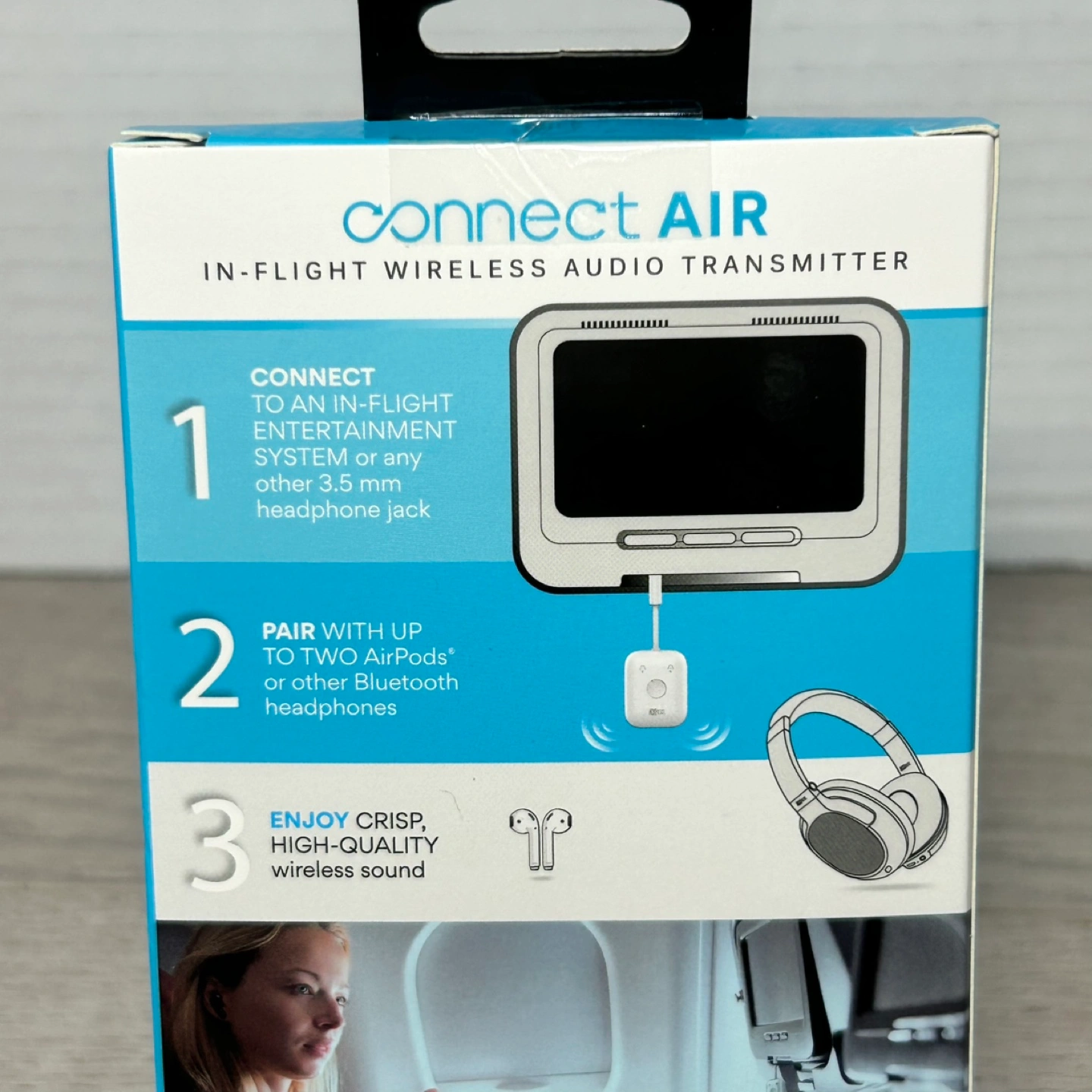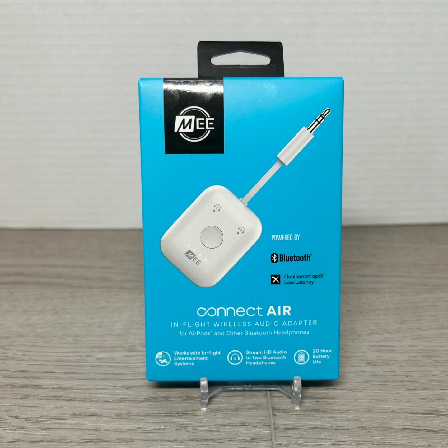 Selling a brand new Mee Connect Air in-flight wireless audio adapter. This adapter allows you to connect to in-flight entertainment systems or any 3.5 mm headphone jack. You can also pair up to two AirPods or other Bluetooth headphones for crisp, high-quality wireless sound. It also features Qualcomm aptX Low Latency and streams HD Audio to two Bluetooth headphones. Box included!