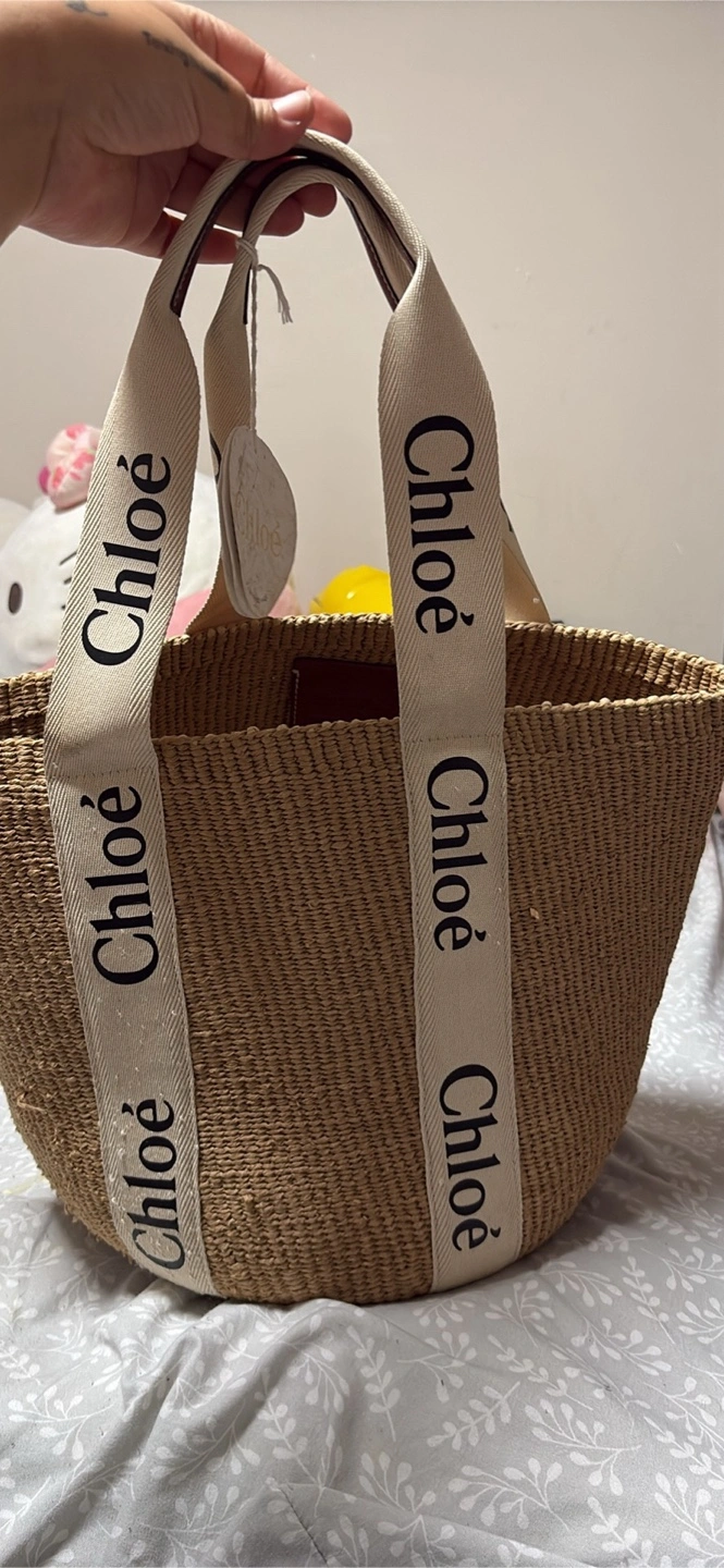 Selling a stylish Chloé woven raffia basket tote bag! It's perfect for adding a touch of elegance to your everyday look. The bag features the Chloé logo on the straps, making it a fashionable statement piece. It's in great condition and ready for a new home