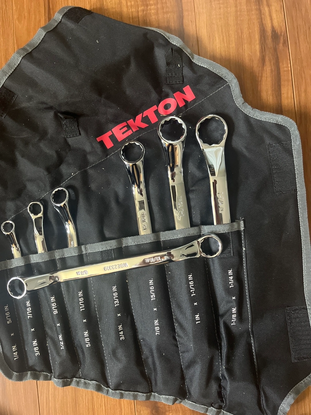 Selling a TEKTON wrench set that includes a variety of sizes from 1/4 inch to 1-1/4 inch. The wrenches are in great shape and come in a handy roll-up pouch for easy storage and organization. Perfect for any DIY project or professional use! I am also selling a metric set in another post and willing to bundle.